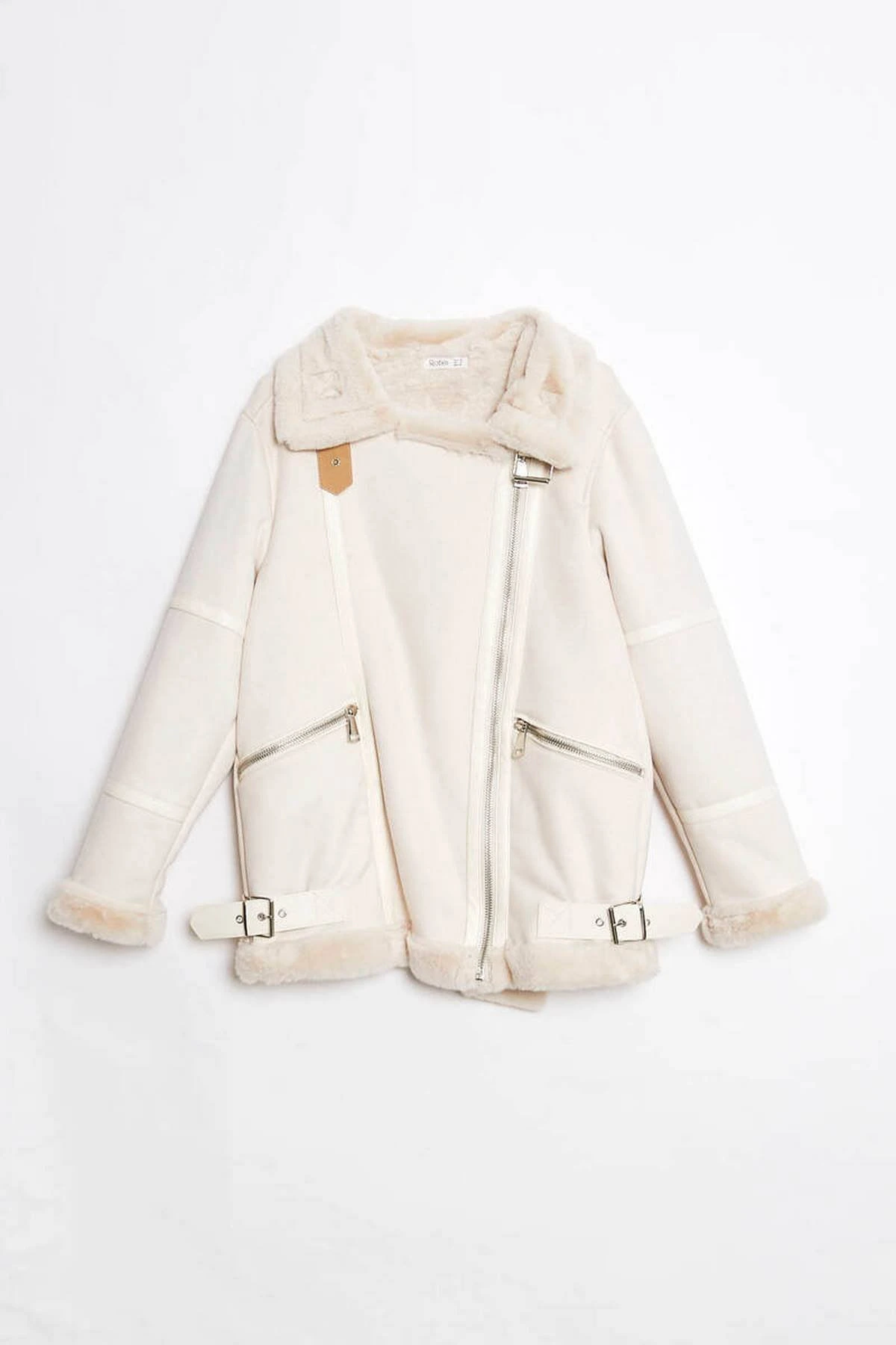 İÇ DIŞ DERİ DETAY CEPLİ FERMUARLI LEOPAR PELUŞ MONT – TAŞ