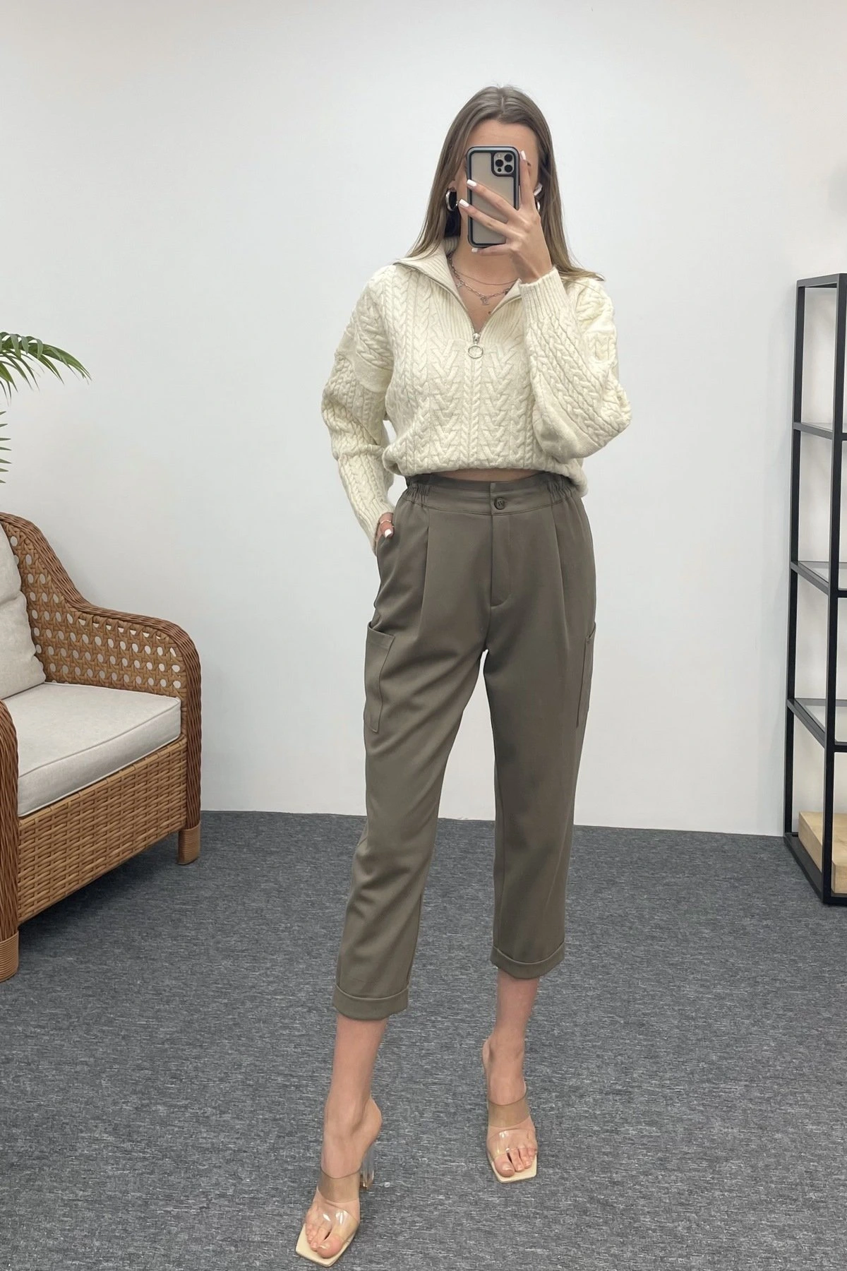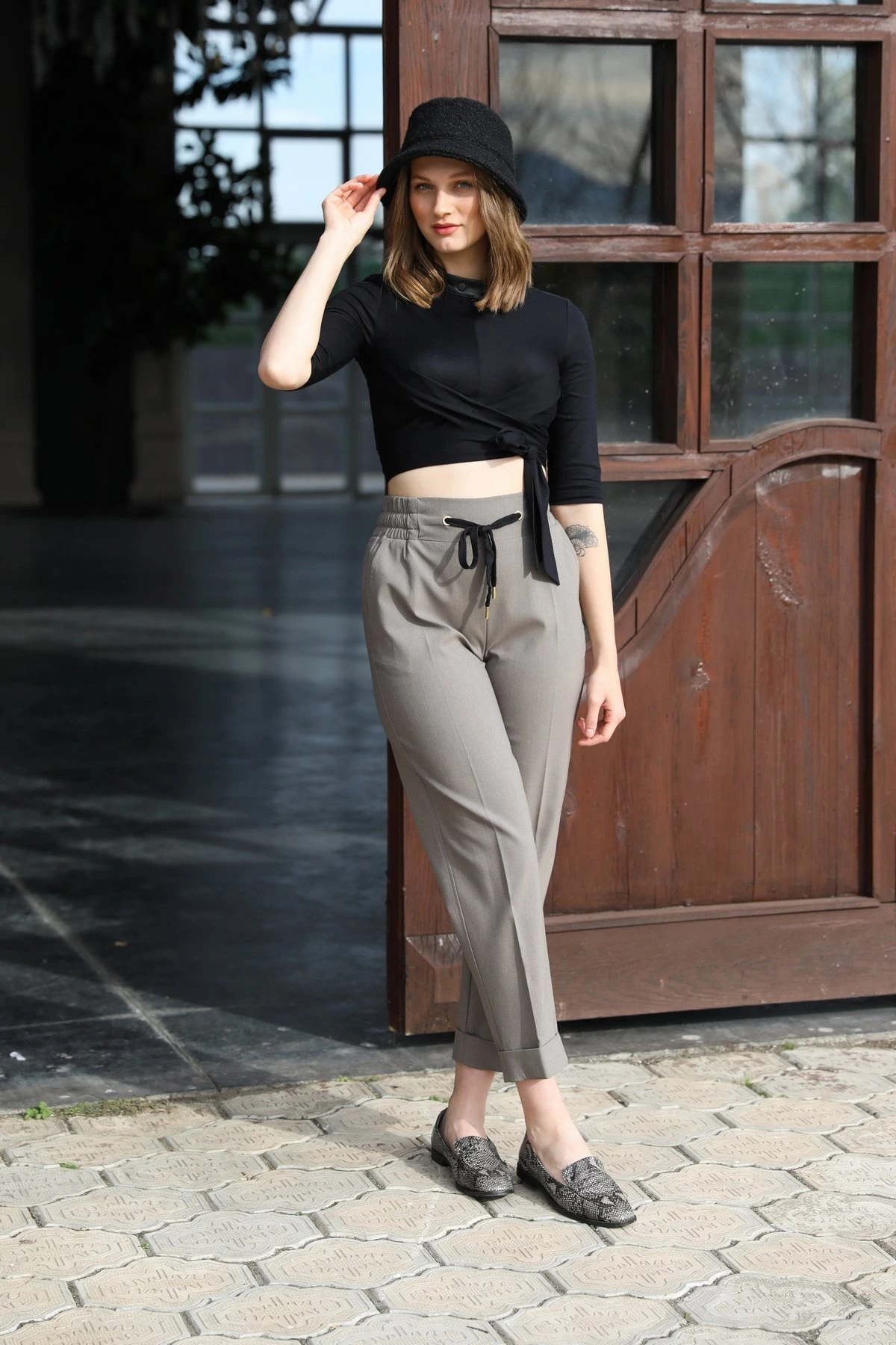 BEL LASTİK CEPLİ SÜET VİSKON RAHAT PANTOLON – VİZON