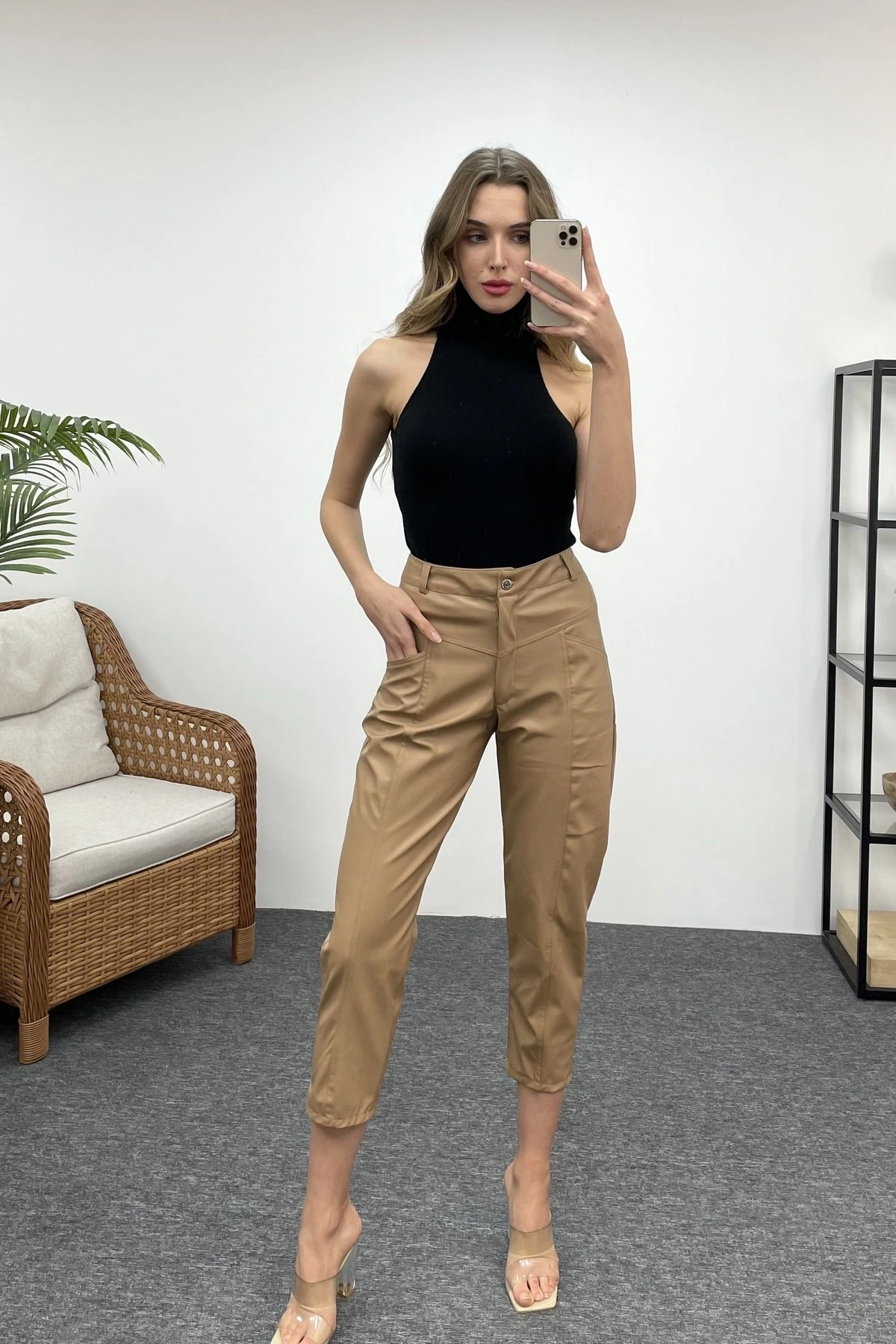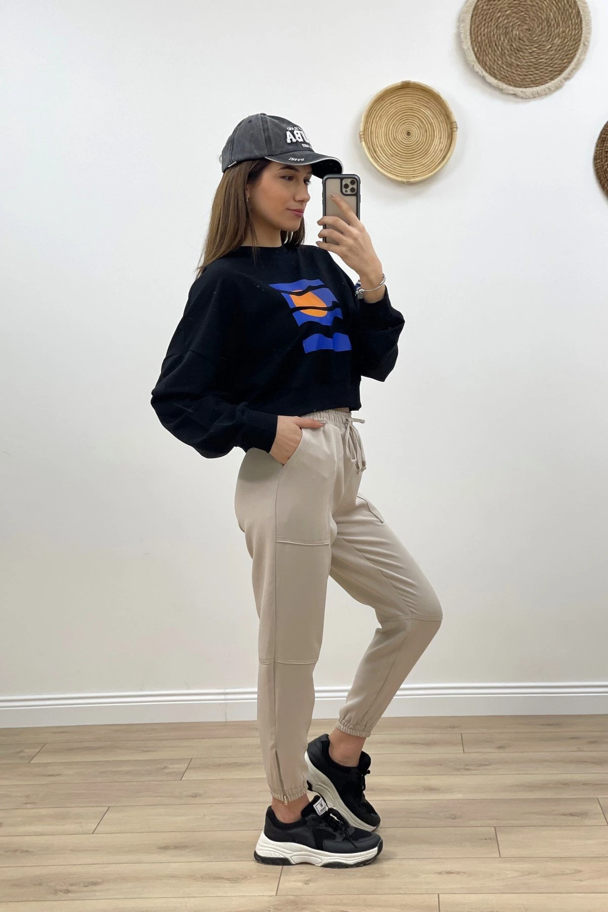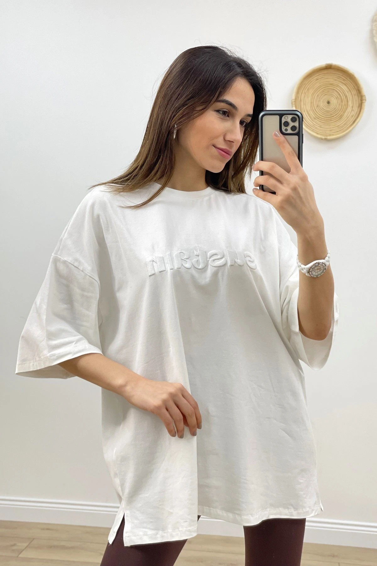 ÖN ASKI NAKIŞ HAVLU DETAY SALAŞ PAMUK TİŞÖRT – BEJ