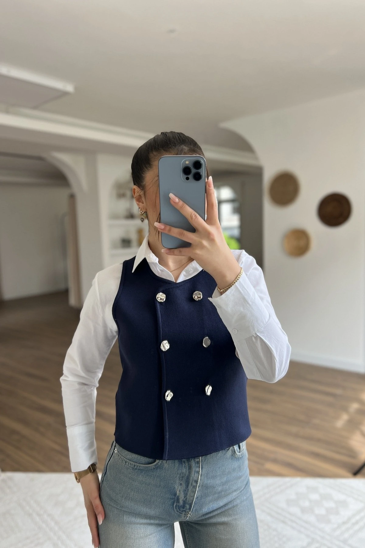 GOLD AKSESUAR VİSKON UZUN YELEK – LACİVERT