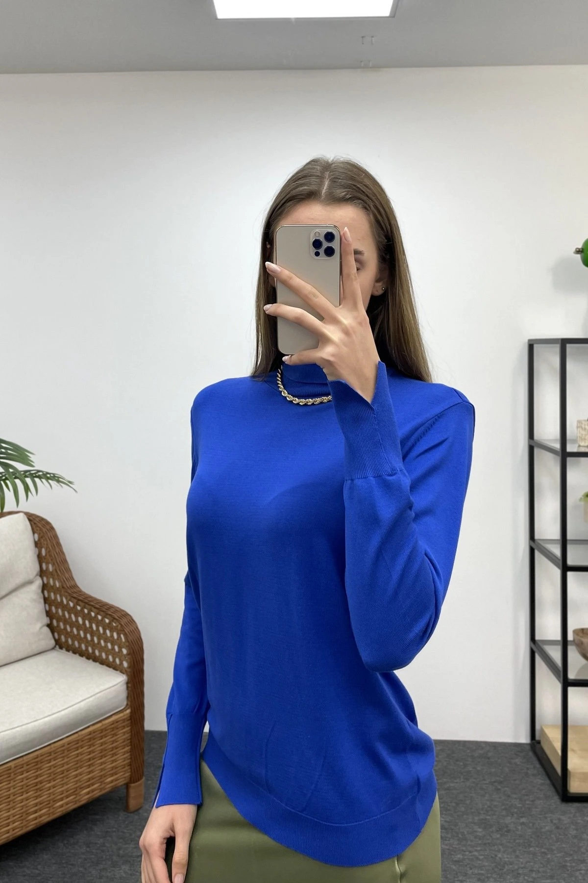 GOLD DÜĞME BİSİKLET YAKA KAZAK – SAKS