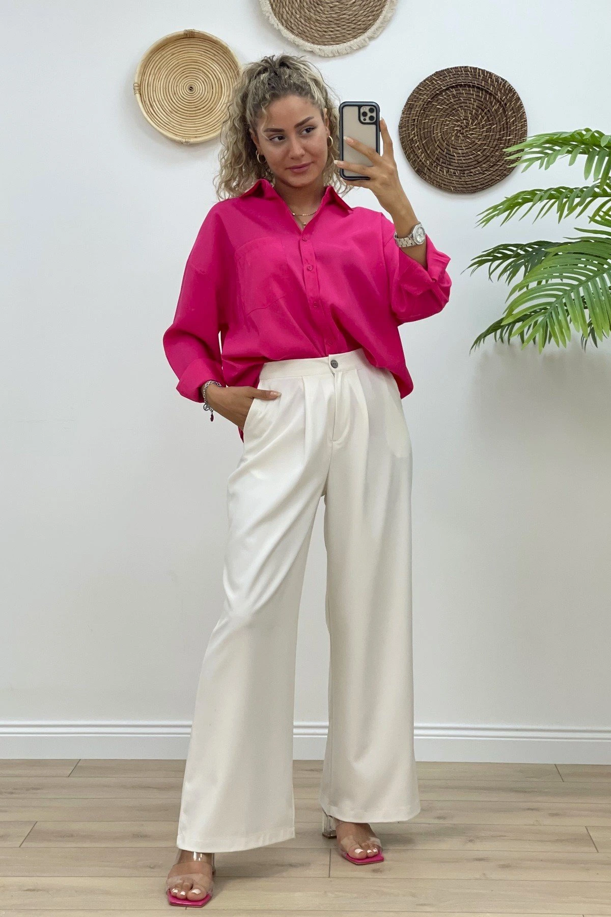 CEPLİ VİSKON PALAZZO PANTOLON – KREM