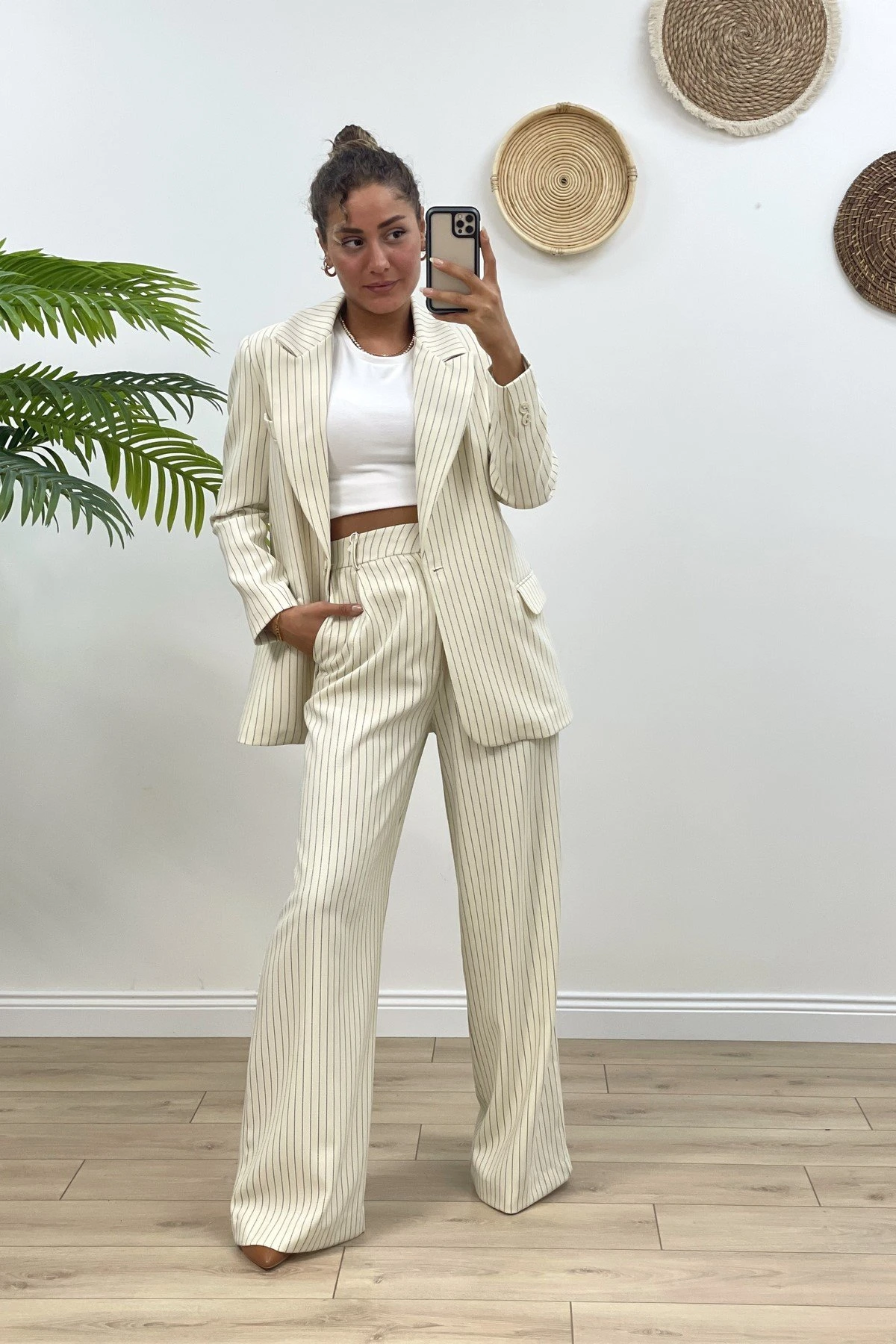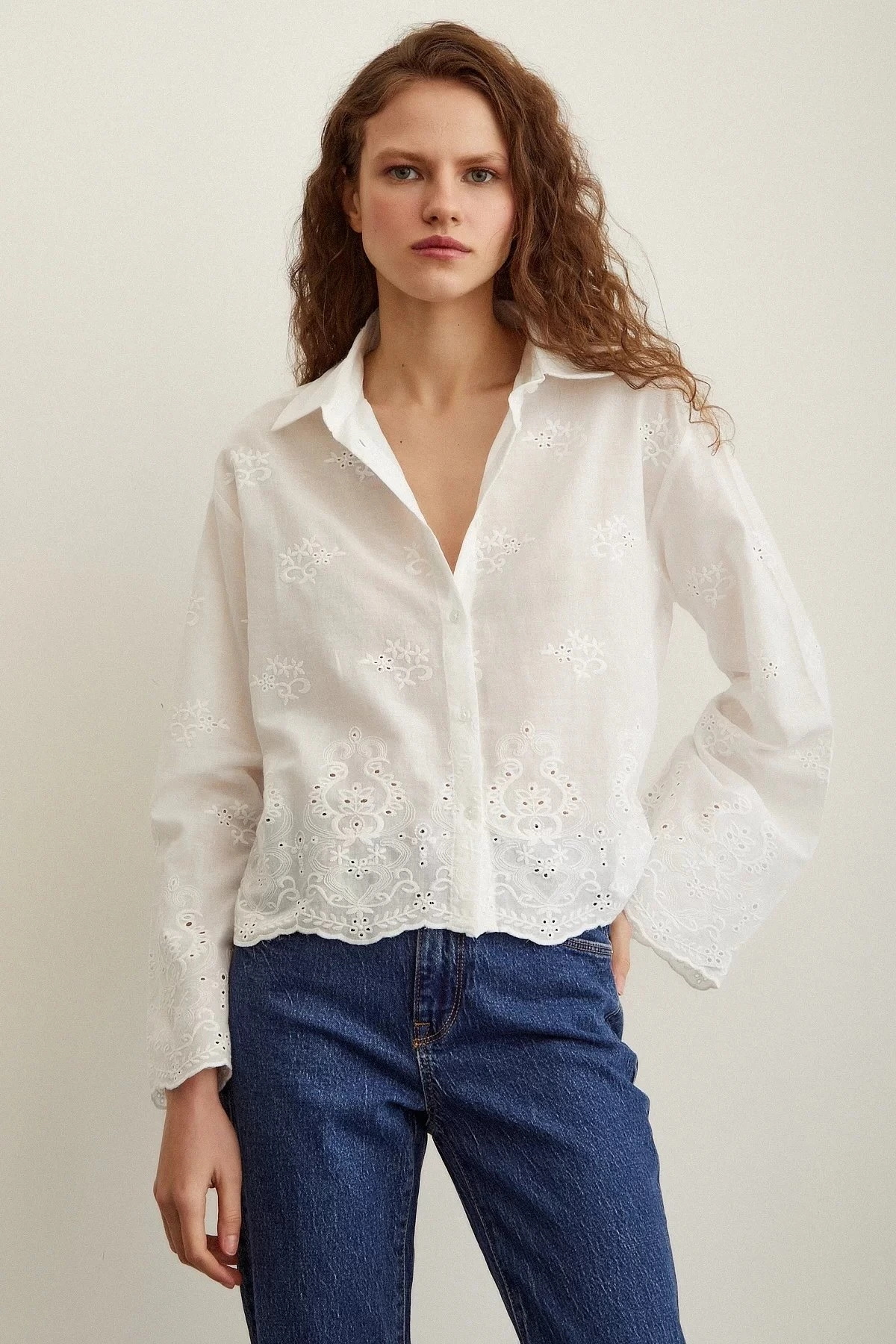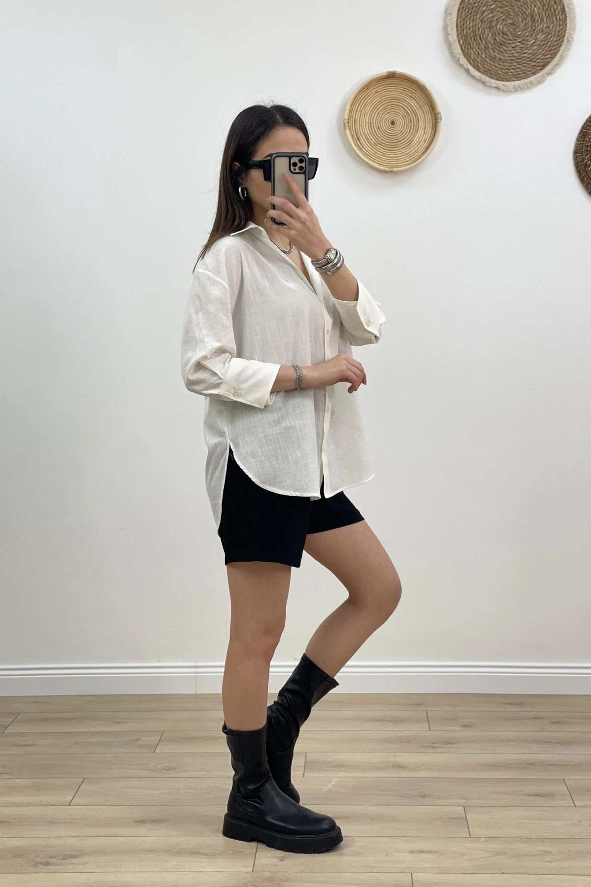 DOKU KARELİ PAMUK GÖMLEK – EKRU