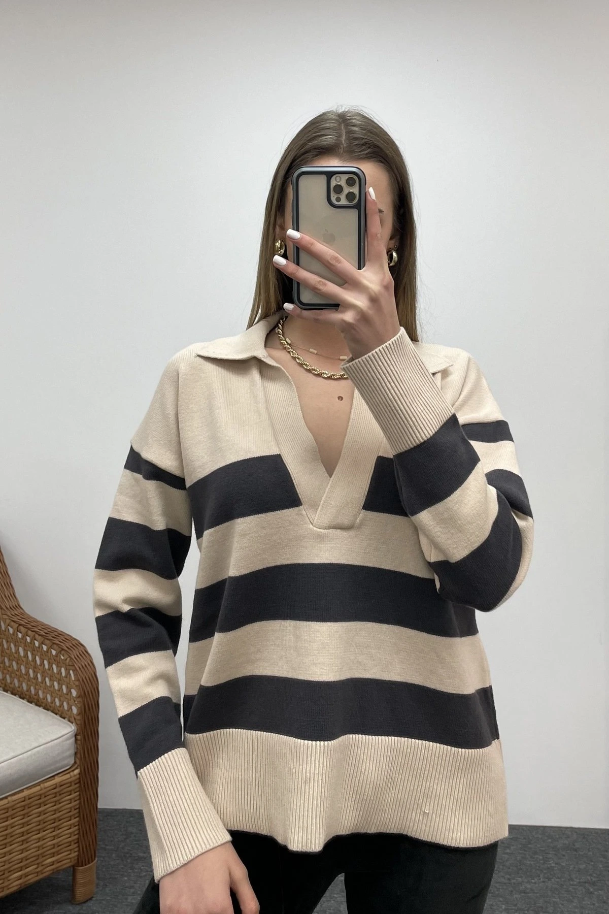 CEP DÜĞMELİ V YAKA TİŞÖRT – AÇIK BEJ