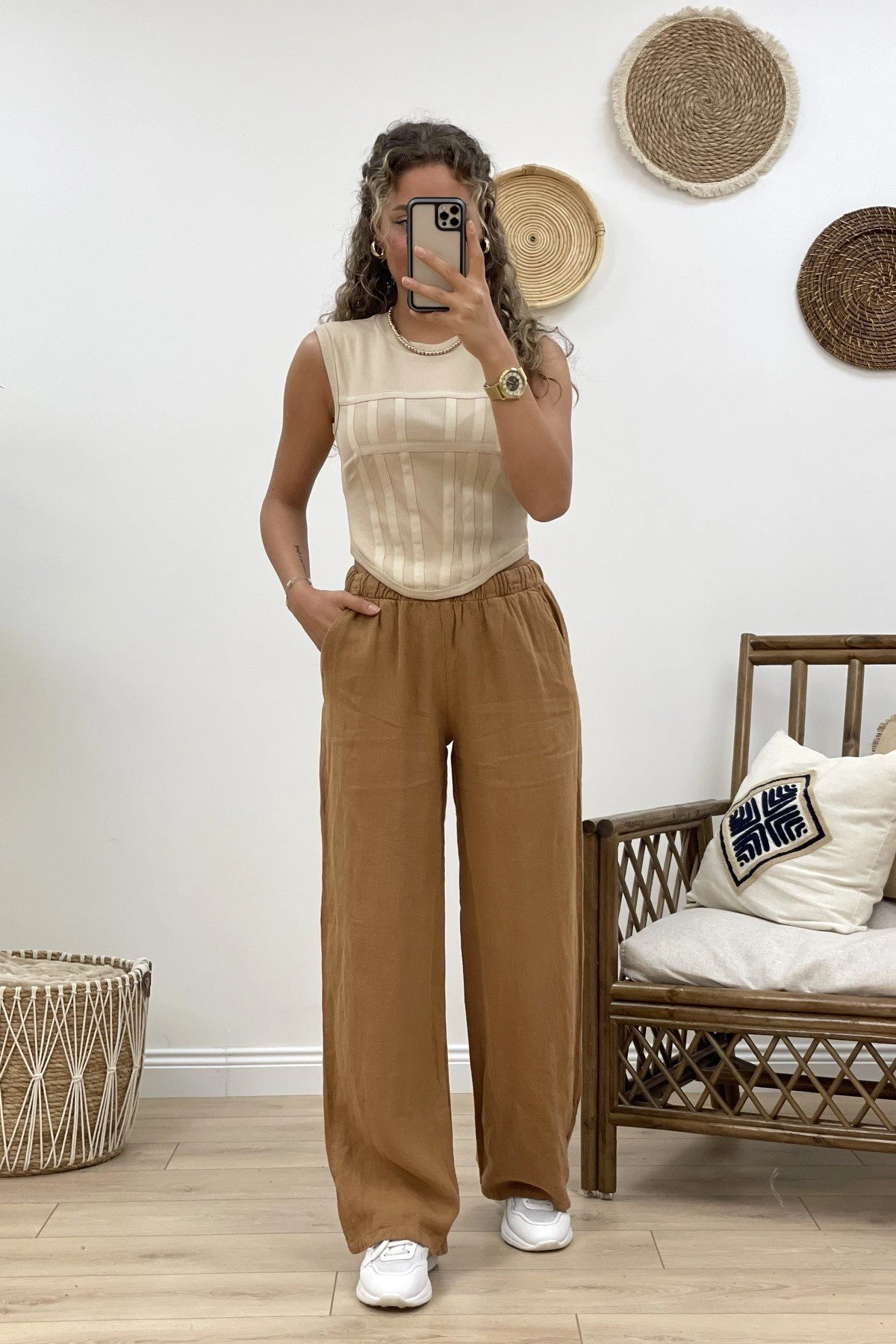 BEL VE BİLEK LASTİKLİ DERİ PANTOLON – AÇIK BEJ
