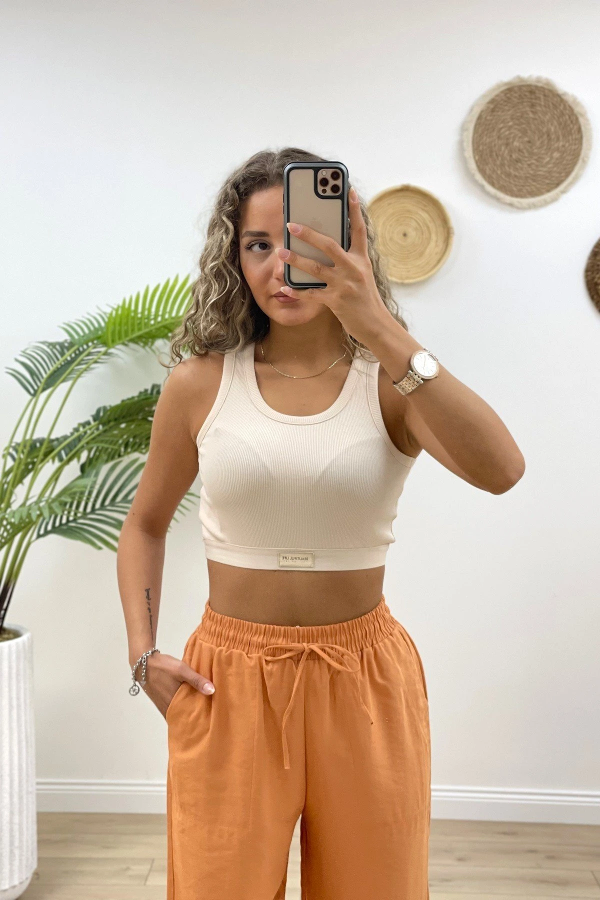 FİTİLLİ YAZI DETAY CROP – AÇIK BEJ