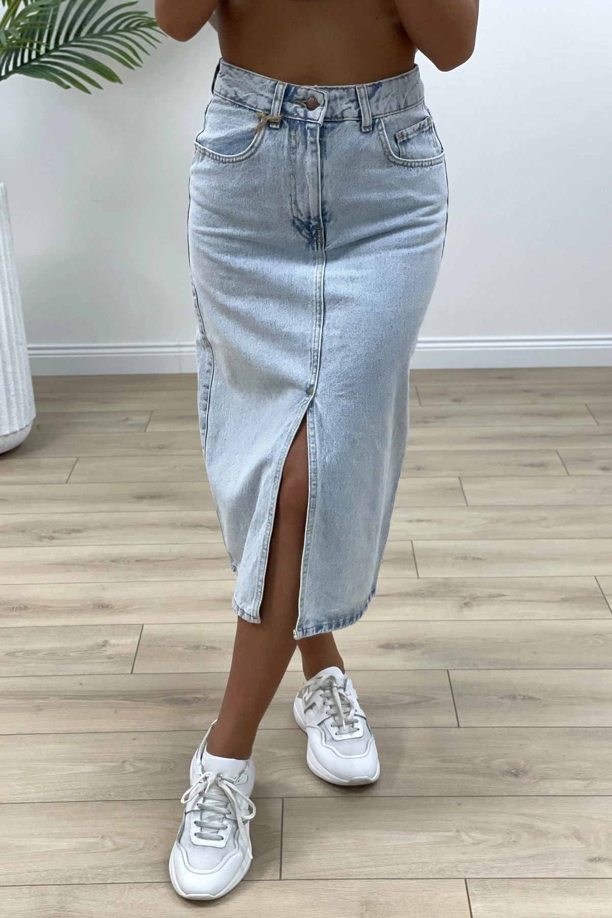KESİK PAÇA YÜKSEK BEL BOYFİT LİKRALI JEAN – BUZ MAVİ