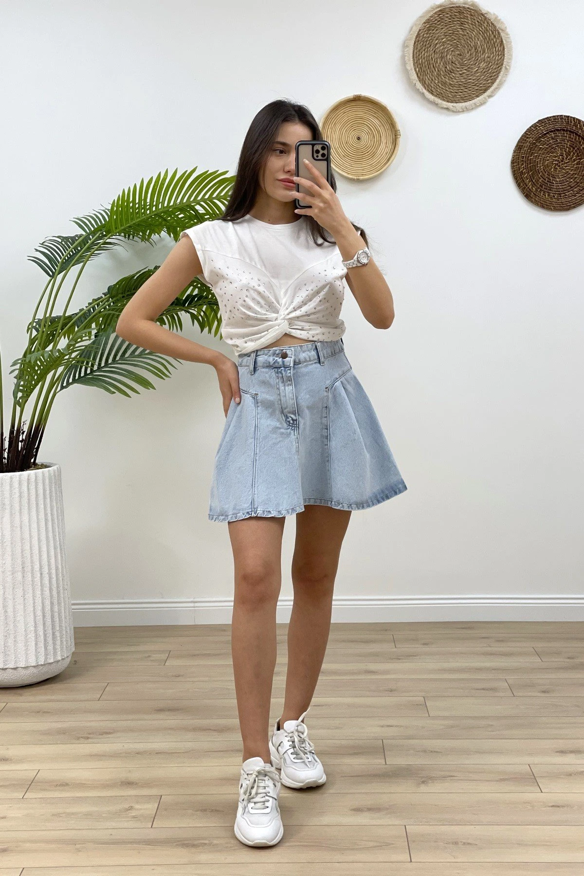 FLARE LİKRALI KESİK PAÇA JEAN – BUZ MAVİ