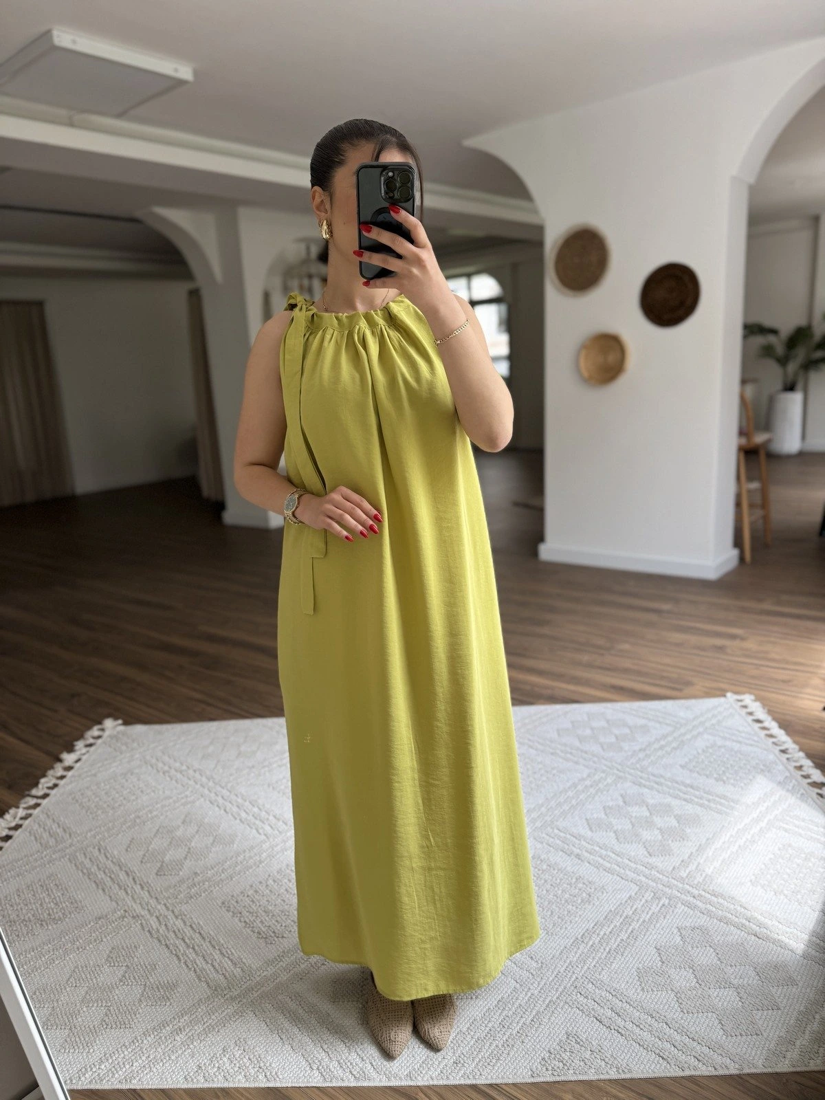 ASKI AYARLI ÖN VA SALAŞ ELBİSE – FISTIK YEŞİLİ