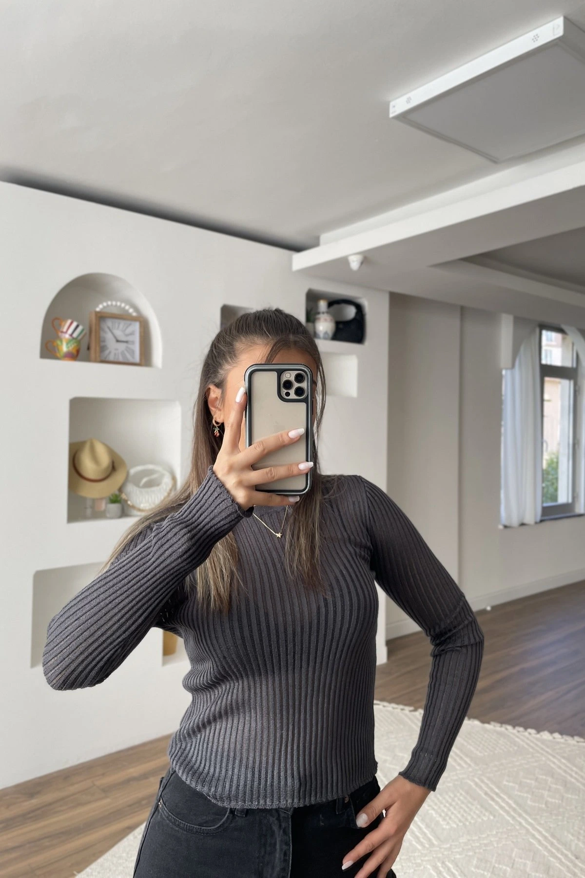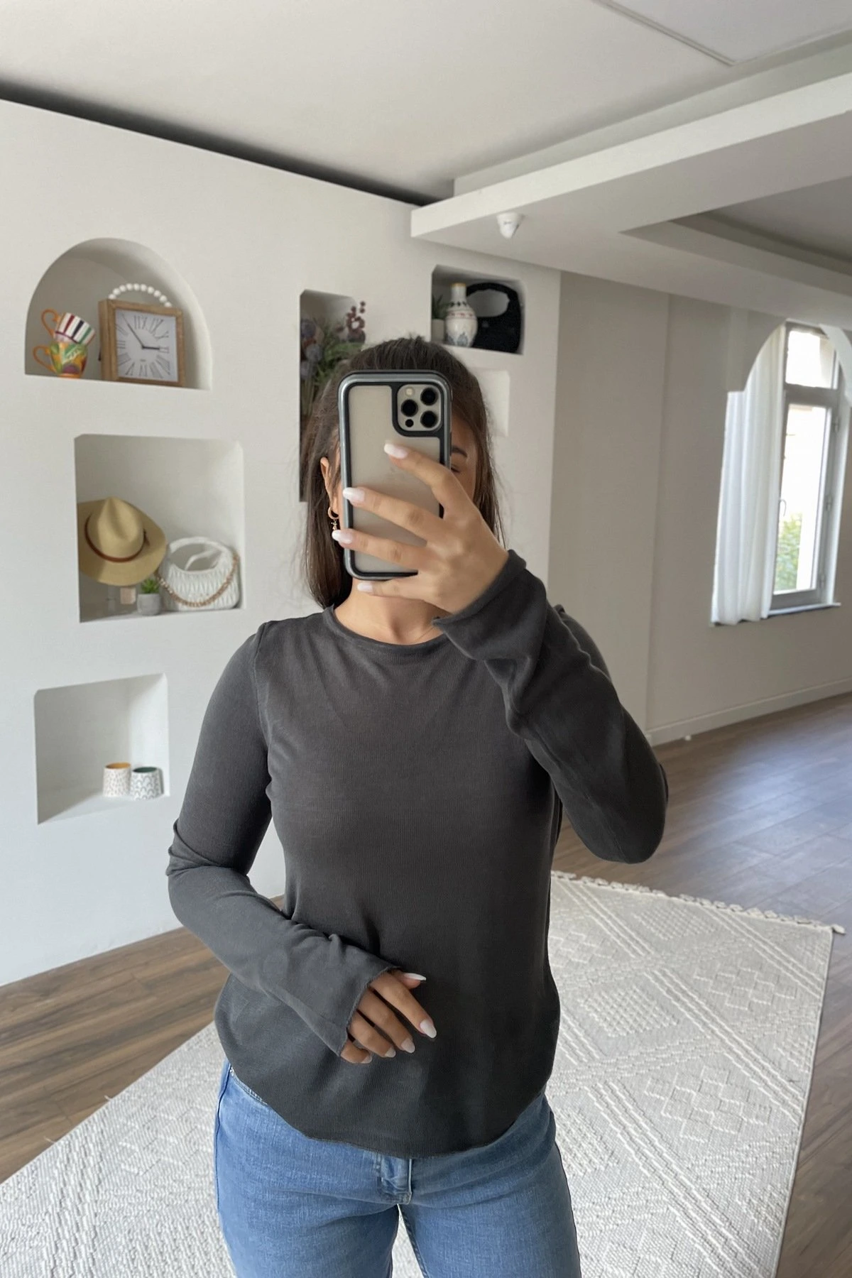 BİSİKLET YAKA İNCE VİSKON TRİKO – FÜME
