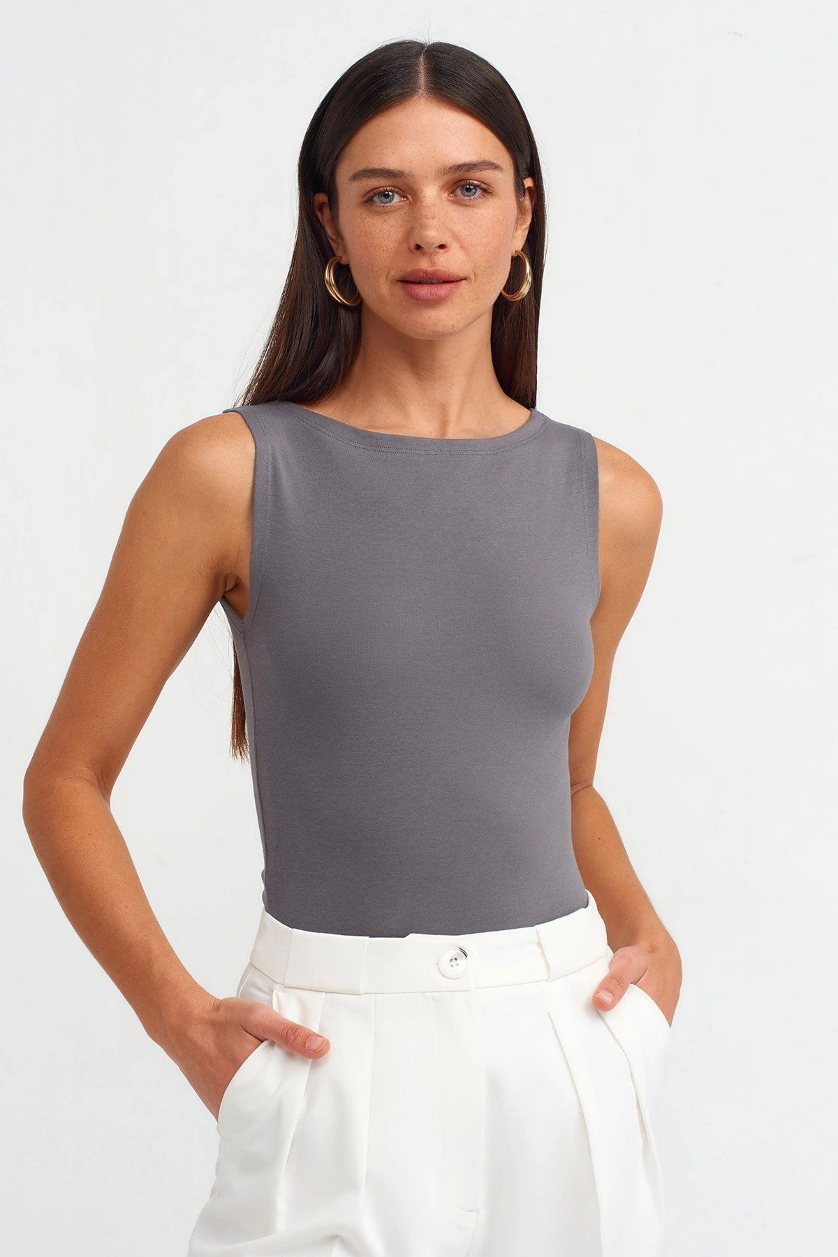 HALTER YAKA FİTİLLİ PAMUK ATLET – FÜME