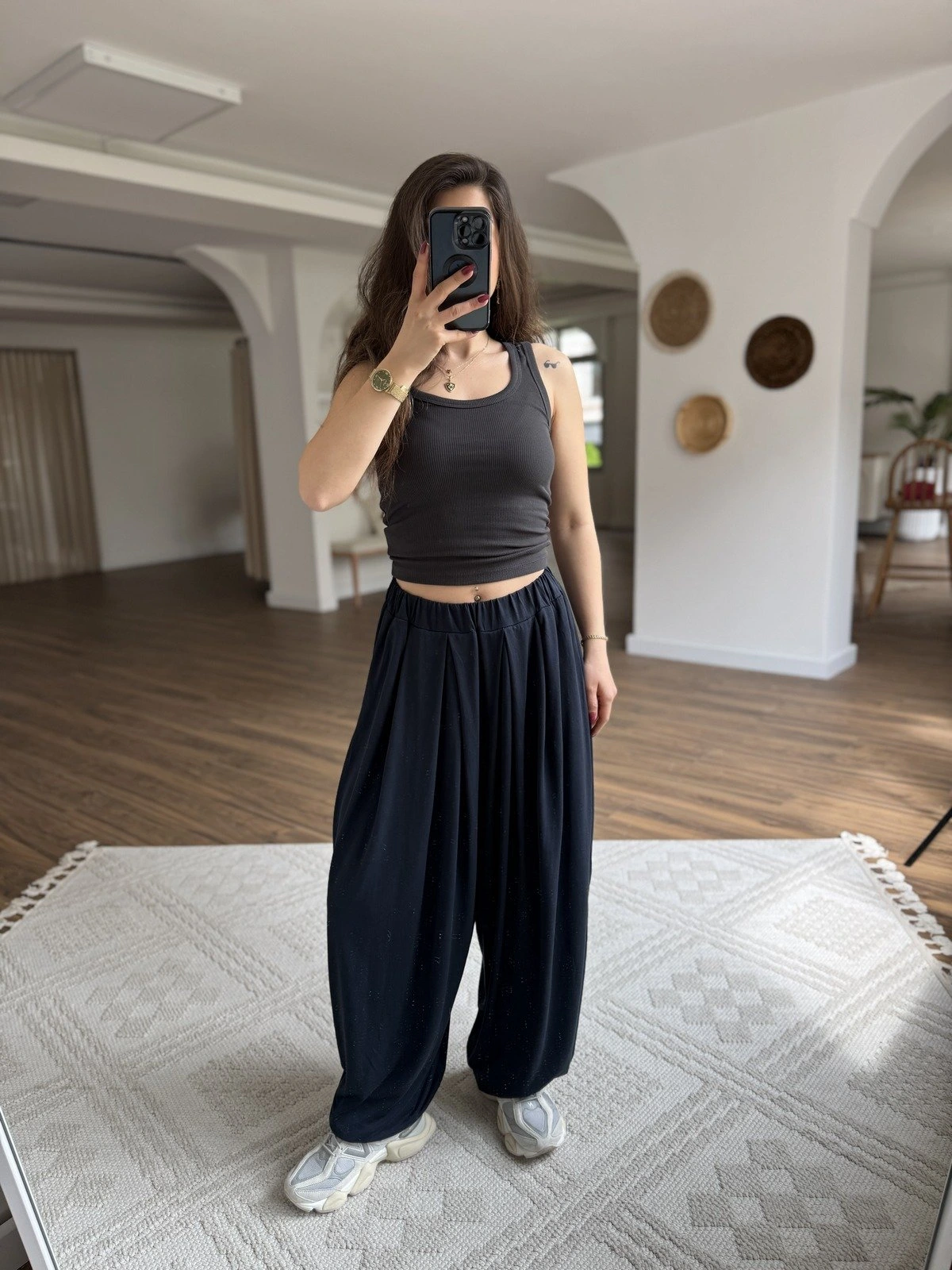 SIRT ÇAPRAZ ASKI İÇ ASTARLI BOL PAÇA MODAL TULUM – FÜME