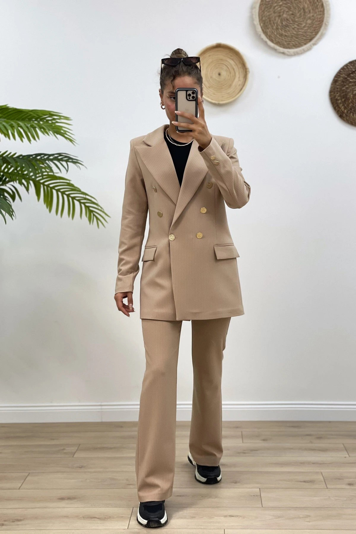 GOLD DÜĞME LİKRALI İSPANYOL PAÇA CEKET TAKIM – KARAMEL
