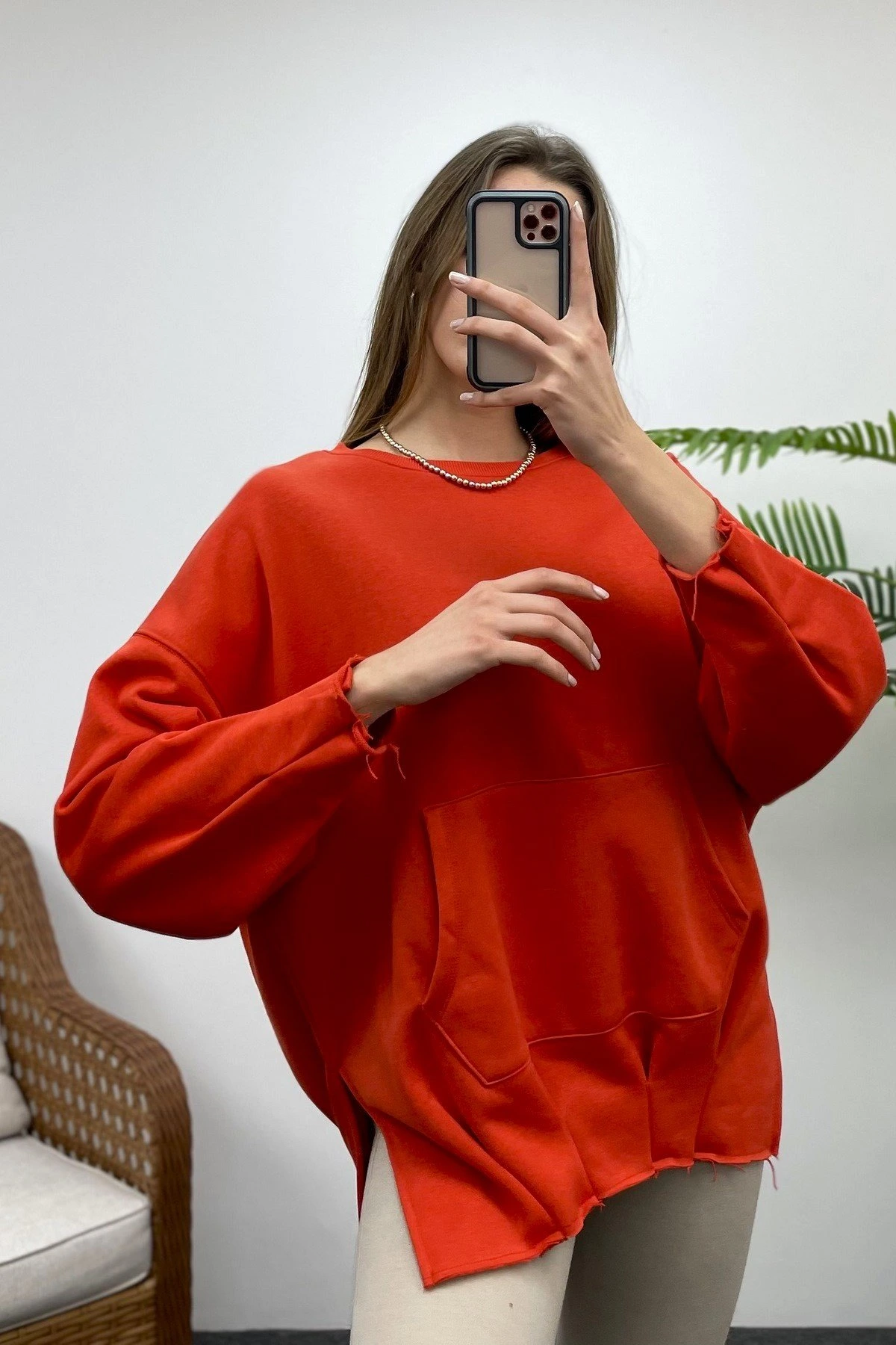 BİSİKLET YAKA REGLAN KOL V DOKUMA VİSKON KAZAK – KİREMİT