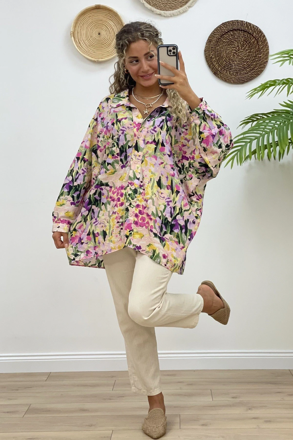 GİZLİ DÜĞME TRUVAKAR KOL PAMUK KETEN GÖMLEK – LİLA