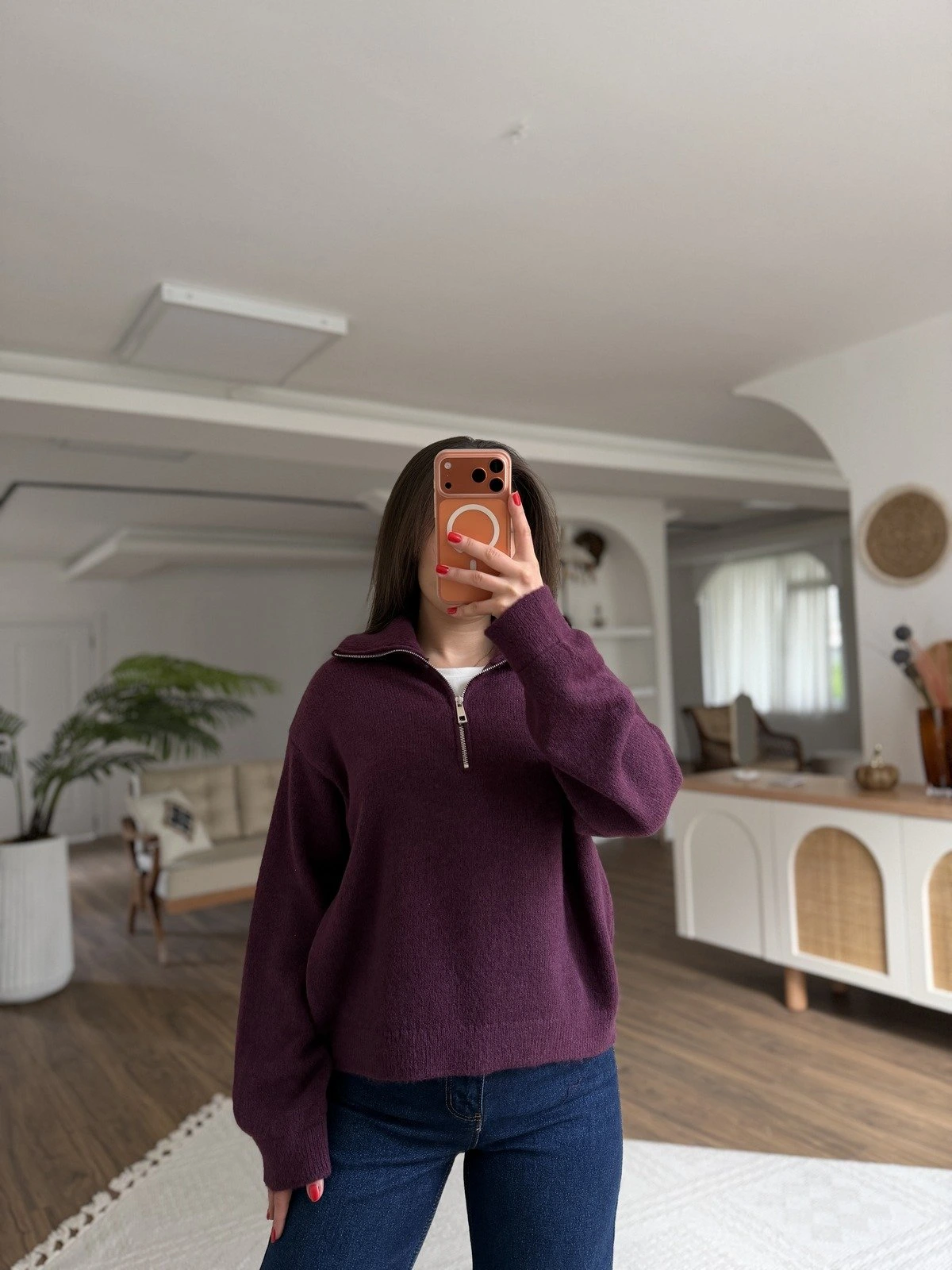 DİK YAKA FERMUARLI KAZAK – MÜRDÜM