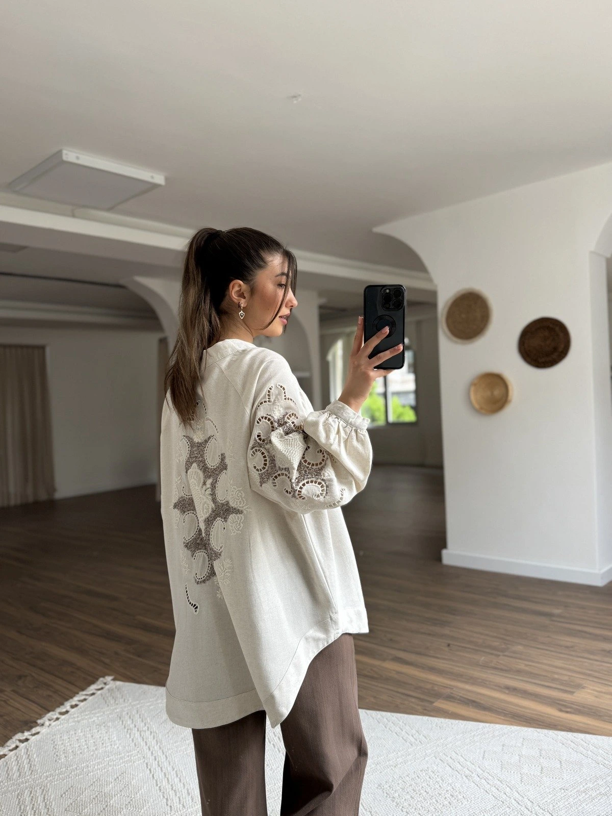 SIRT DOKUMA FİLE PAMUK ARKA UZUN SALAŞ GÖMLEK – NATUREL
