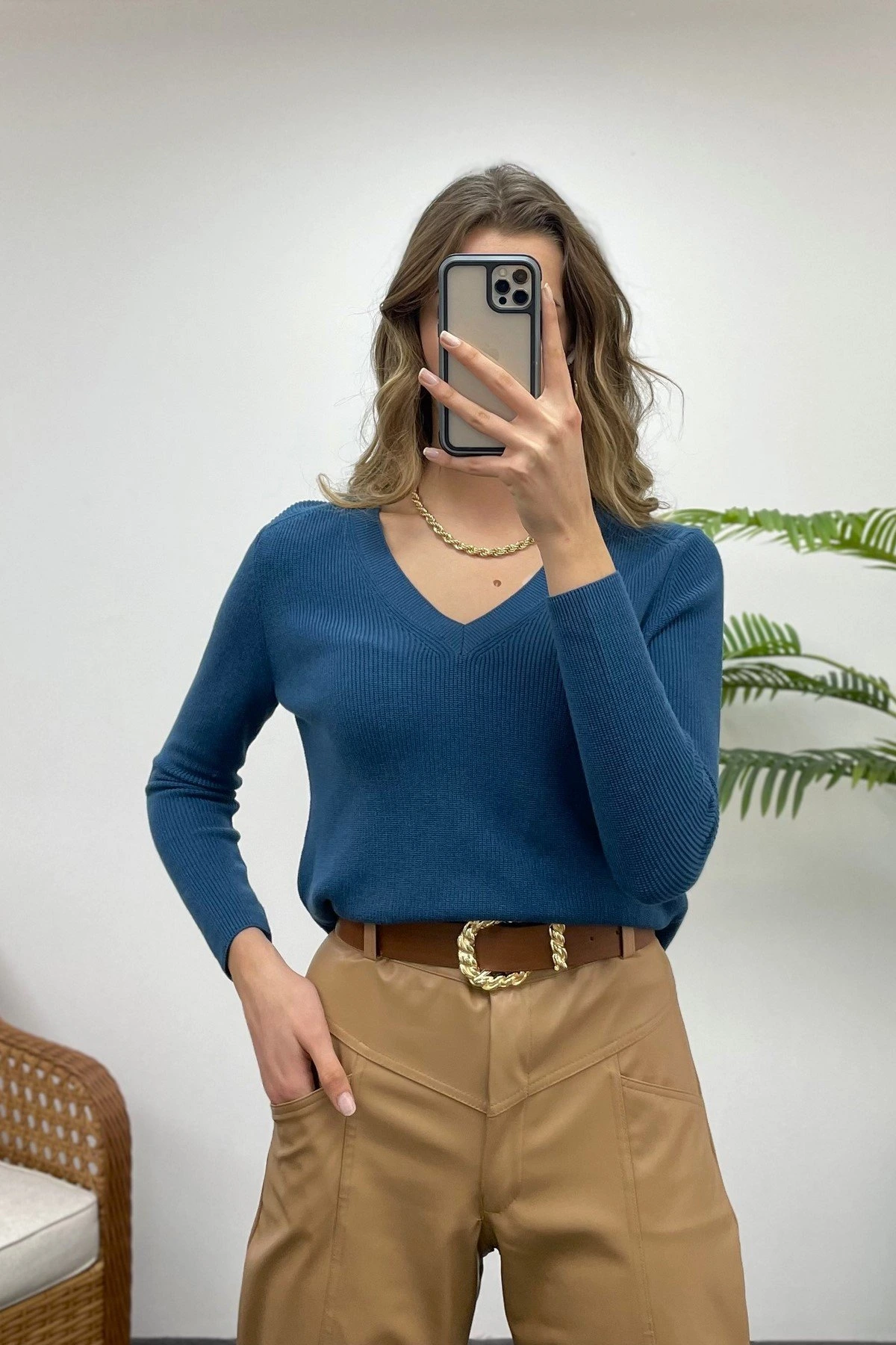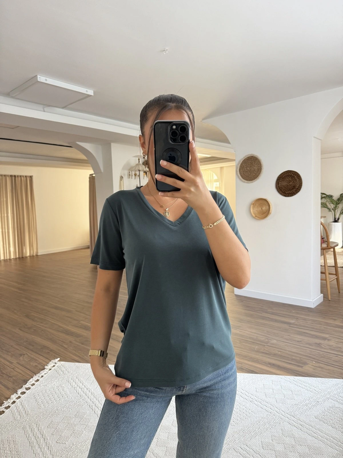 MODAL KARIŞIM KIRIŞIK BEL LASTİK ASTARLI ETEK – PETROL