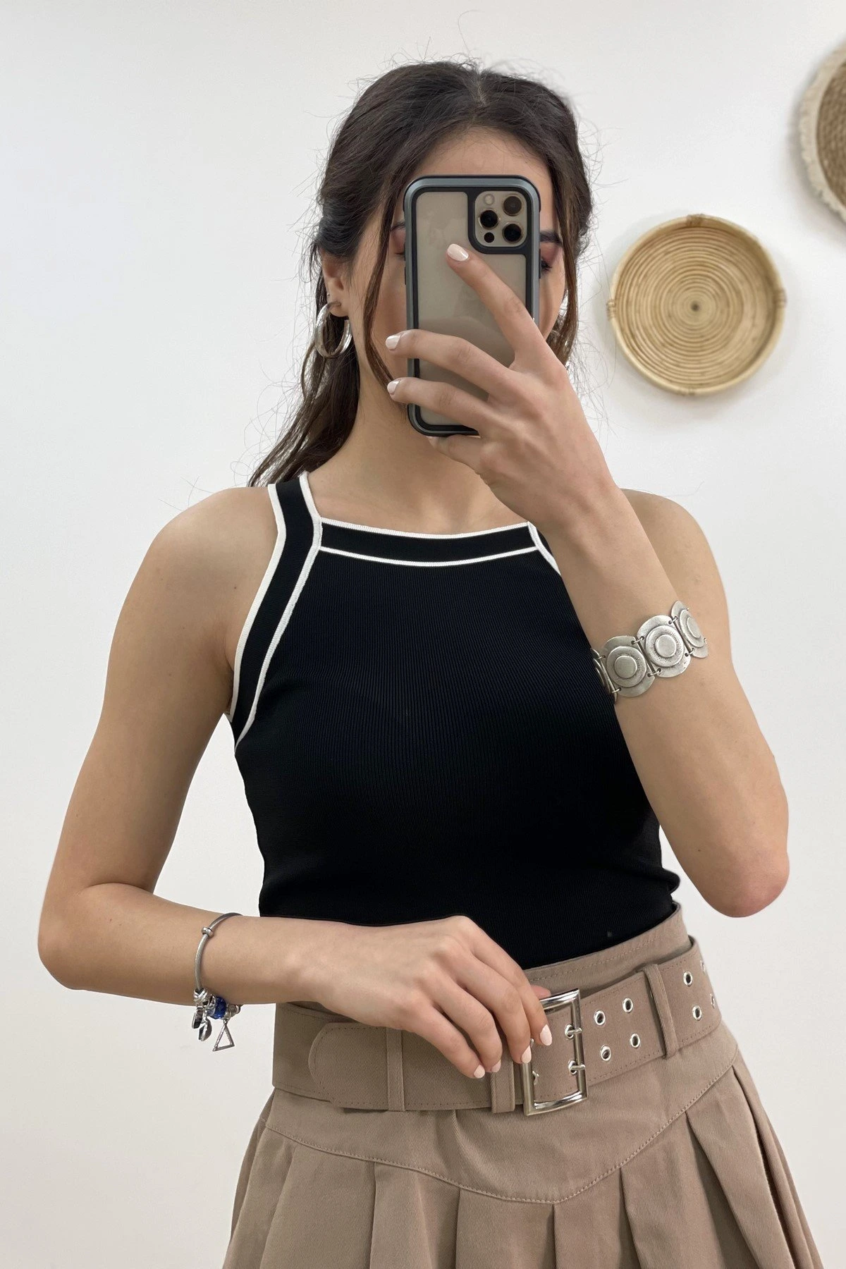KOL VE YAKA ŞERİT U YAKA FİTİLLİ VİSKON TRİKO – SİYAH-KREM