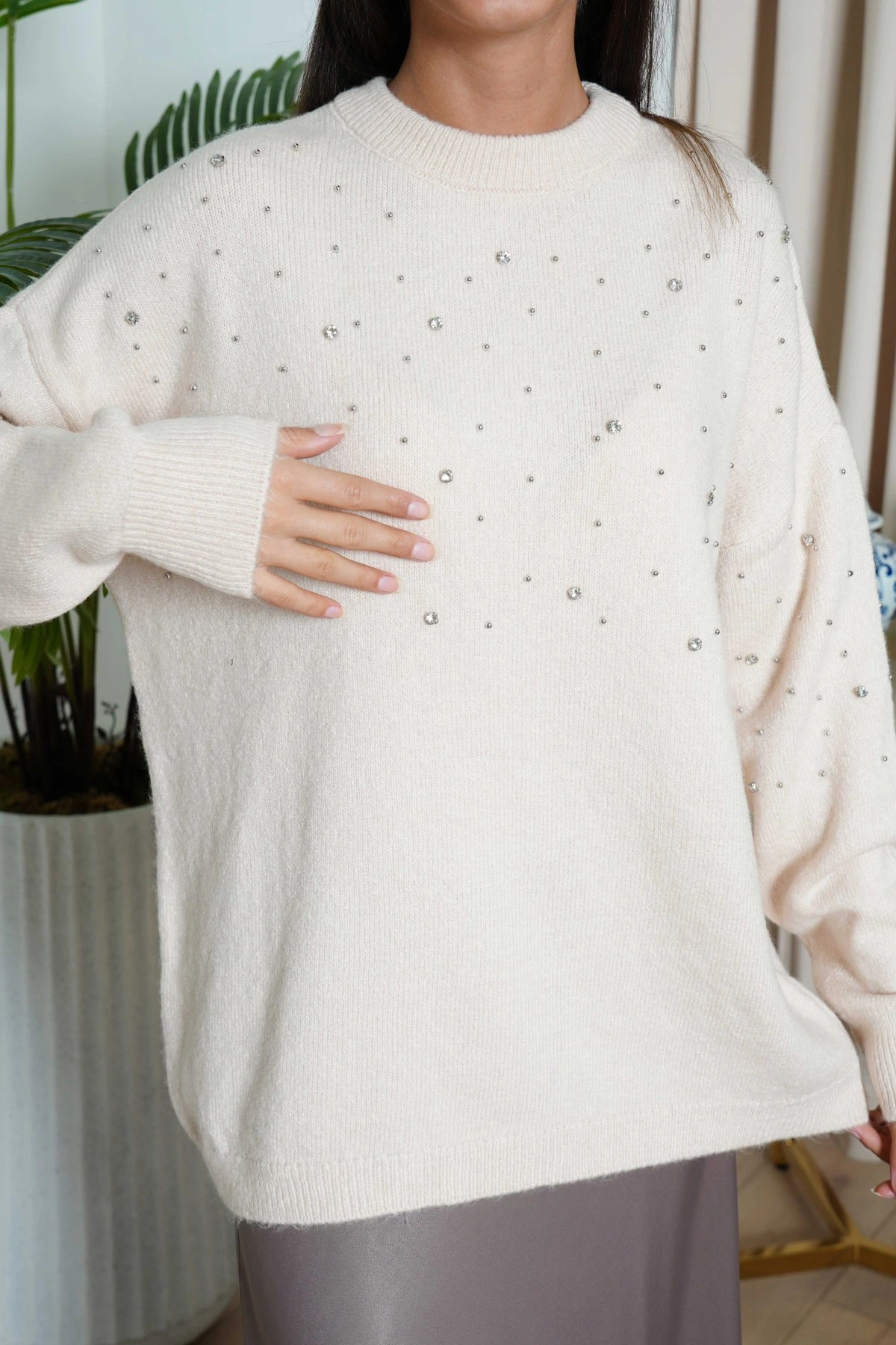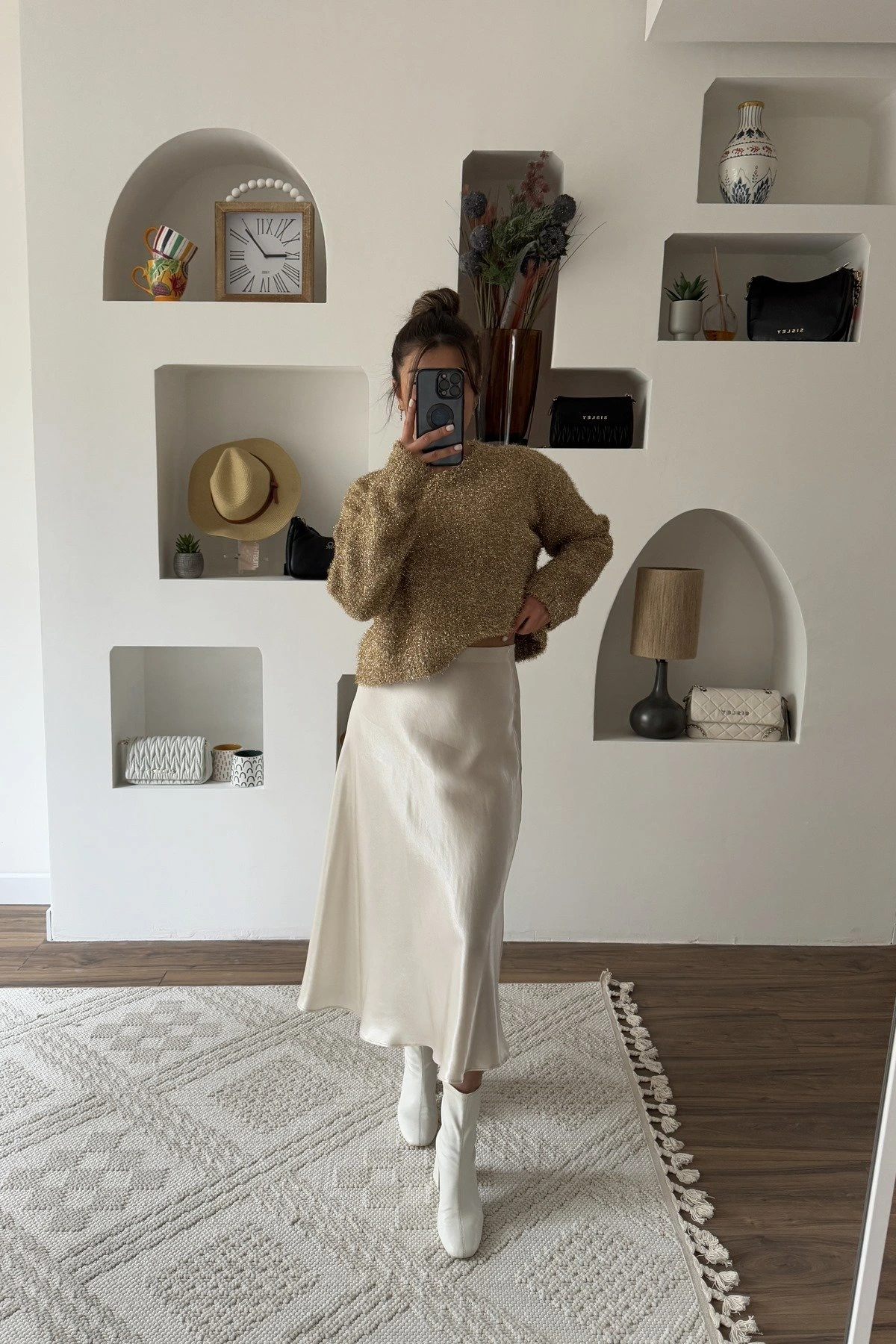 MADONNA YAKA ÜÇGEN KESİM KAZAK – VANİLYA