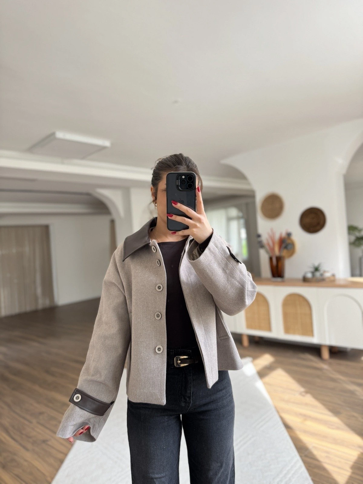 BALIKSIRTI DİKİŞ DETAY KRUVAZE CEKET – VİZON