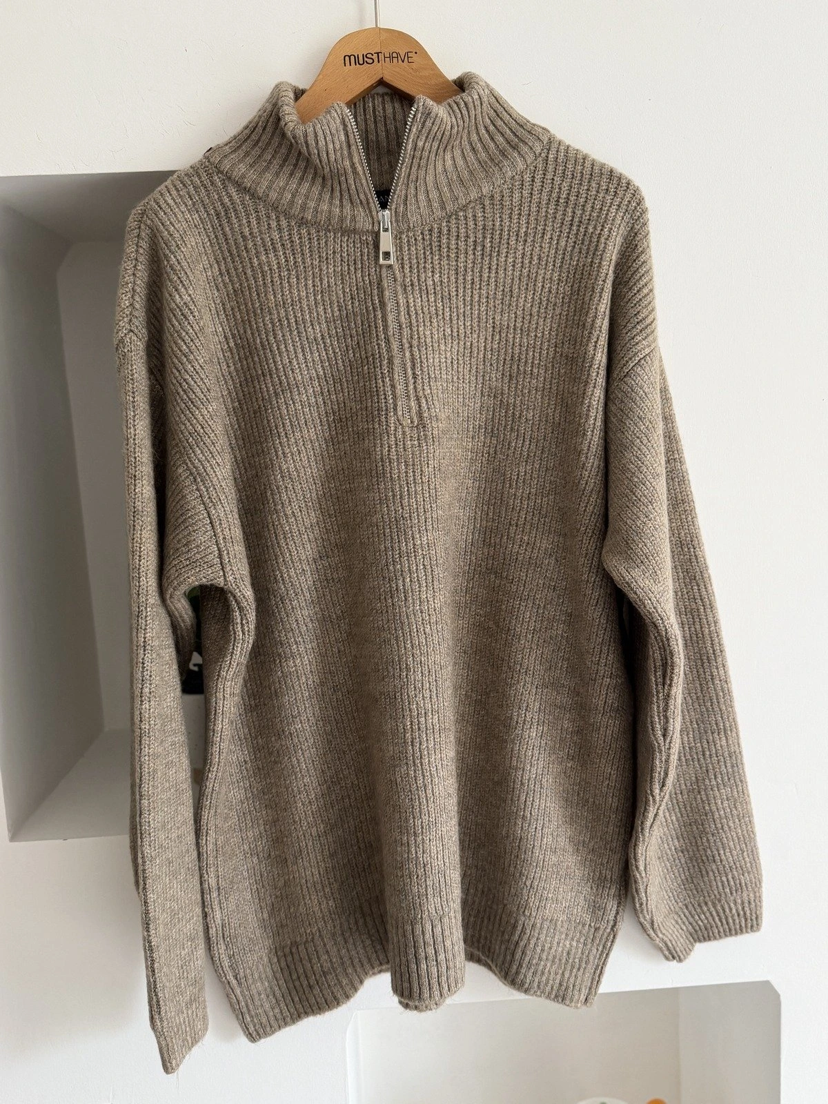 DİK YAKA FERMUARLI SALAŞ KAZAK – VİZON