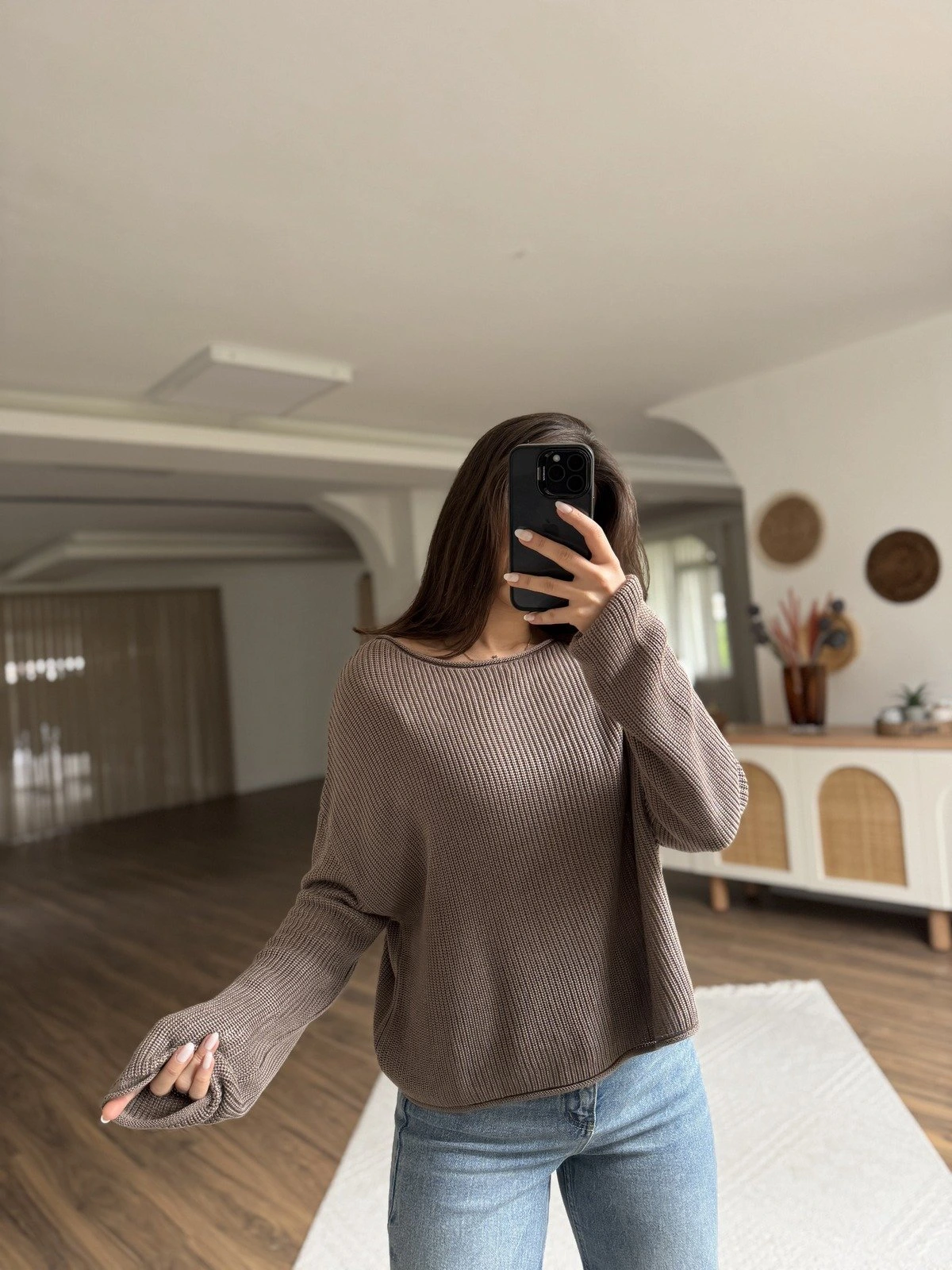 SAÇ ÖRGÜ BİSİKLET YAKA SALAŞ KAZAK – VİZON