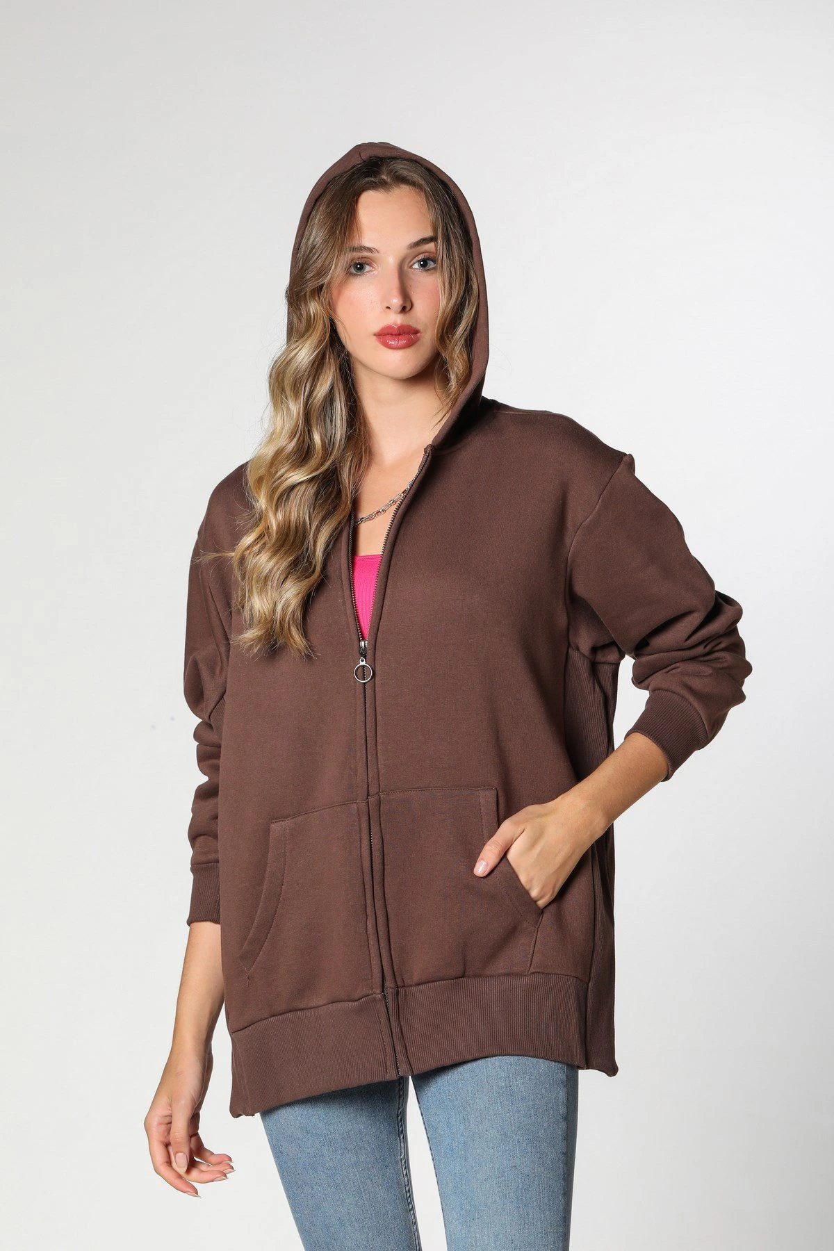 FERMUARLI KAPÜŞONLU SWEAT – KAHVE