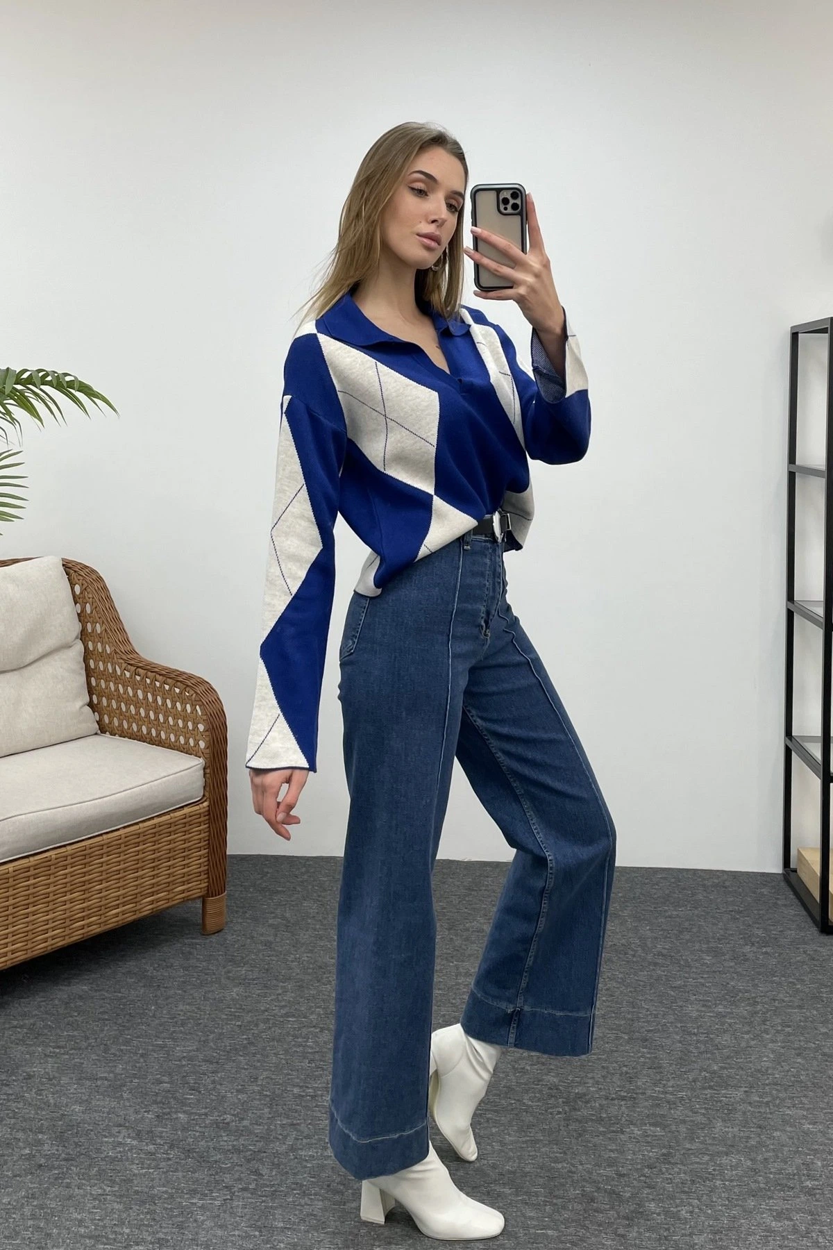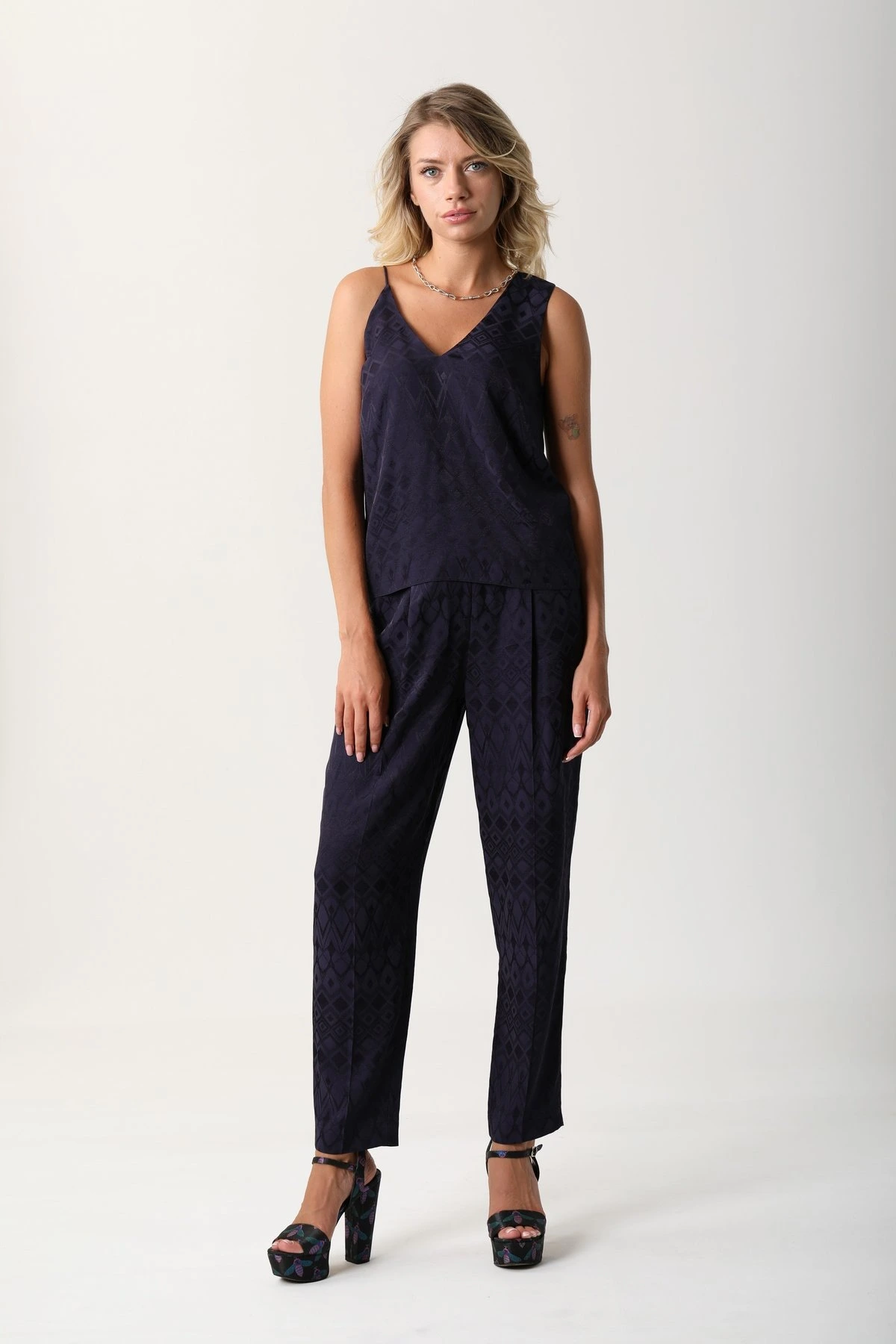 İTHAL GEOMETRİK DESEN SATEN PANTOLON – LACİVERT
