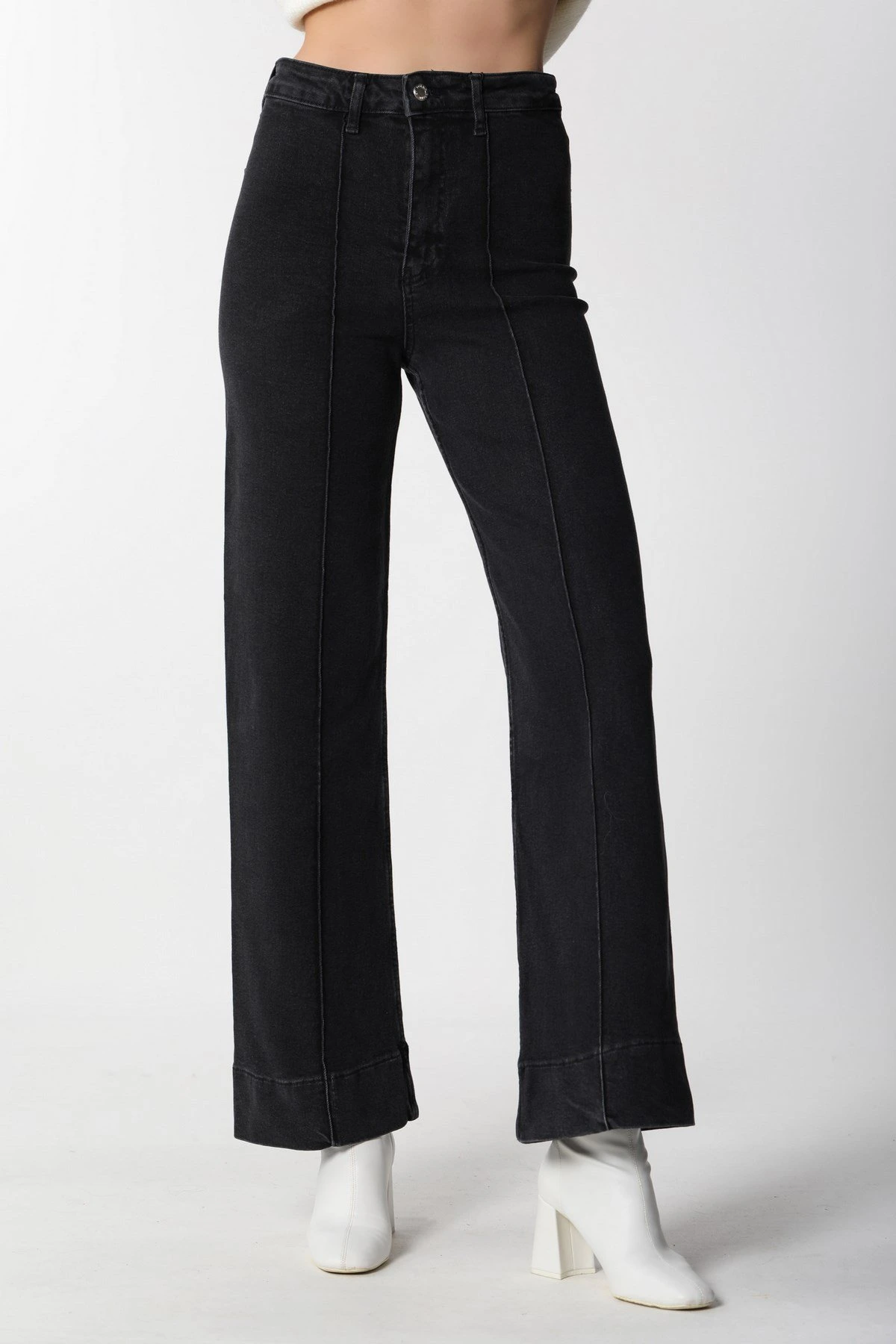 ÖNDEN DİKİŞLİ LİKRALI JEAN – SİYAH