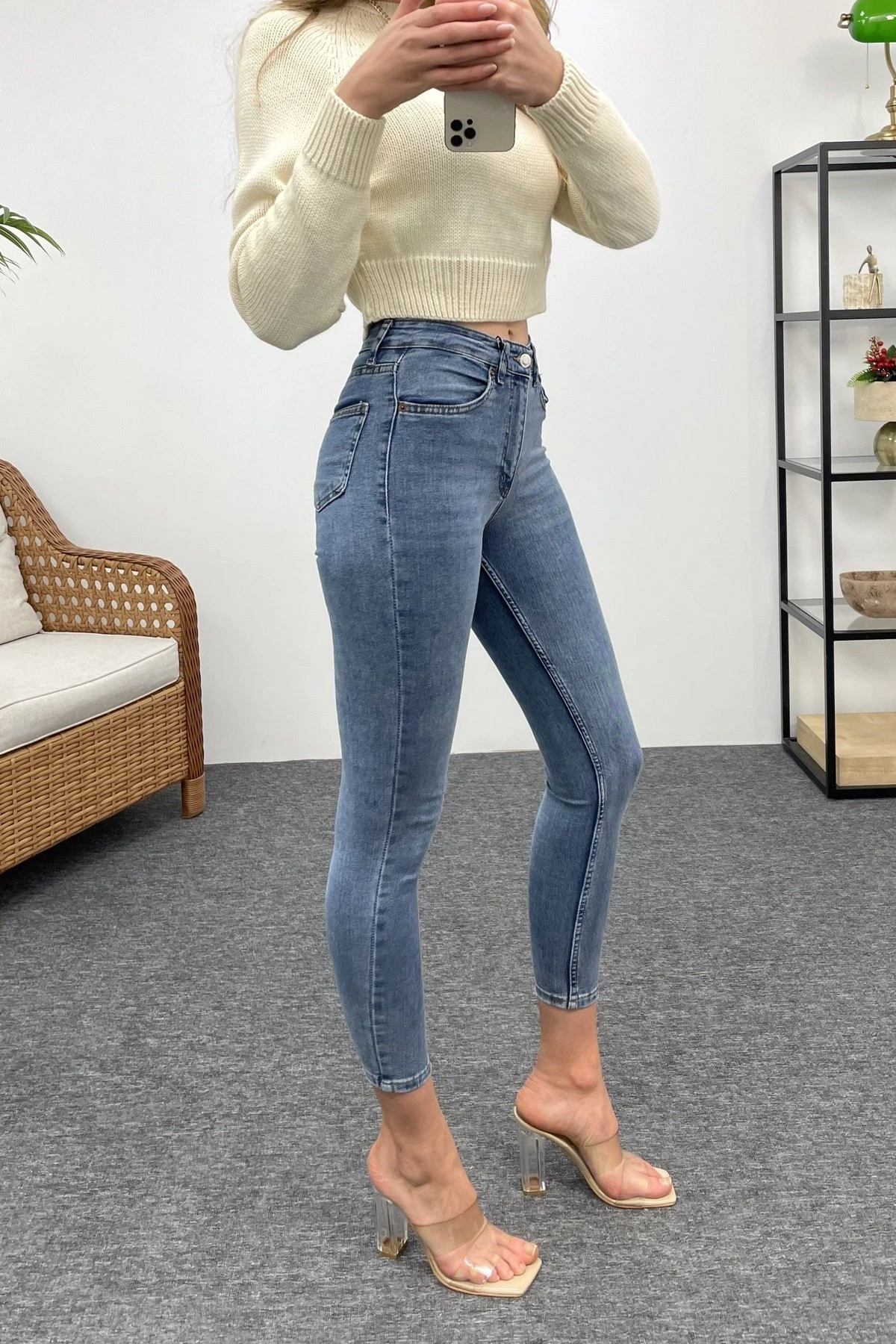 ÖNDEN DİKİŞLİ LİKRALI JEAN – ORTA MAVİ