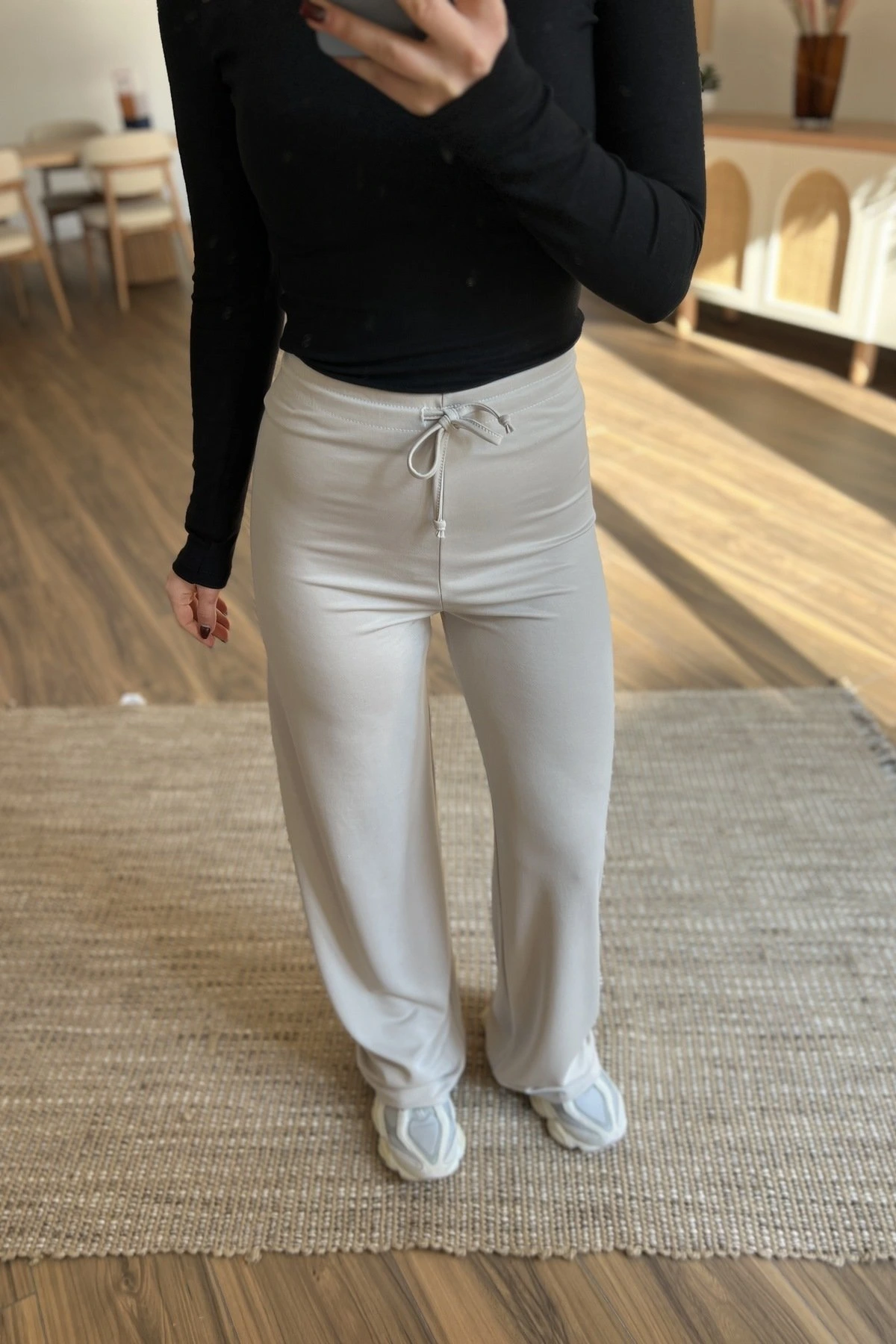 ÖN DİKİŞ BOL PAÇA İNCE MODAL EŞOFMAN – KREM