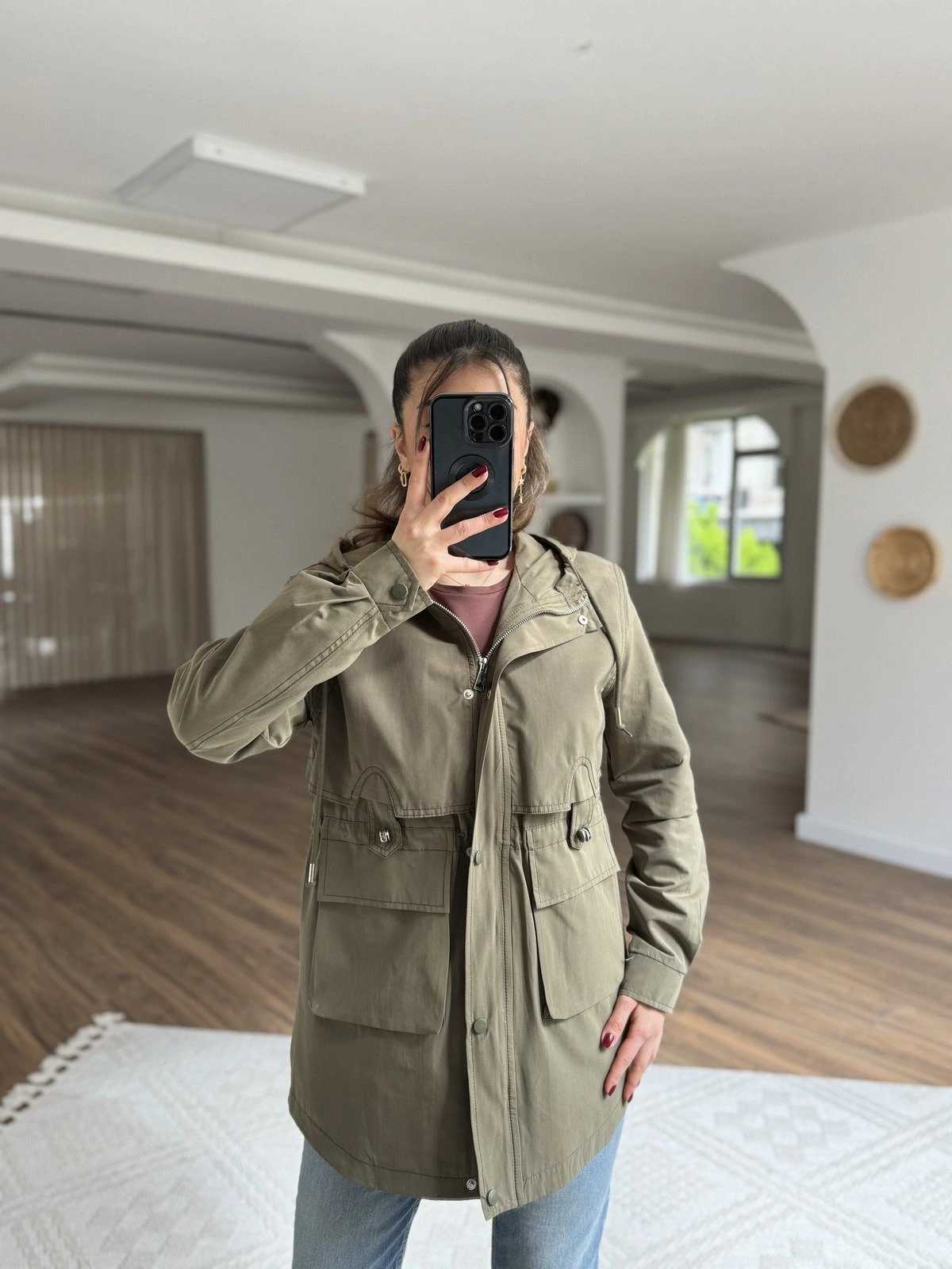 JAPONE KOL YAKA FERMUARLI DİKİŞ DETAY PAMUK ELBİSE – HAKİ