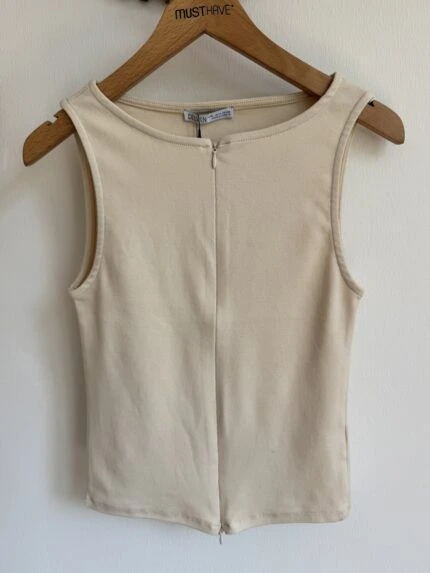 ÖN TAŞ BASKI HALTER YAKA FİTİLLİ PAMUK ATLET – SARI