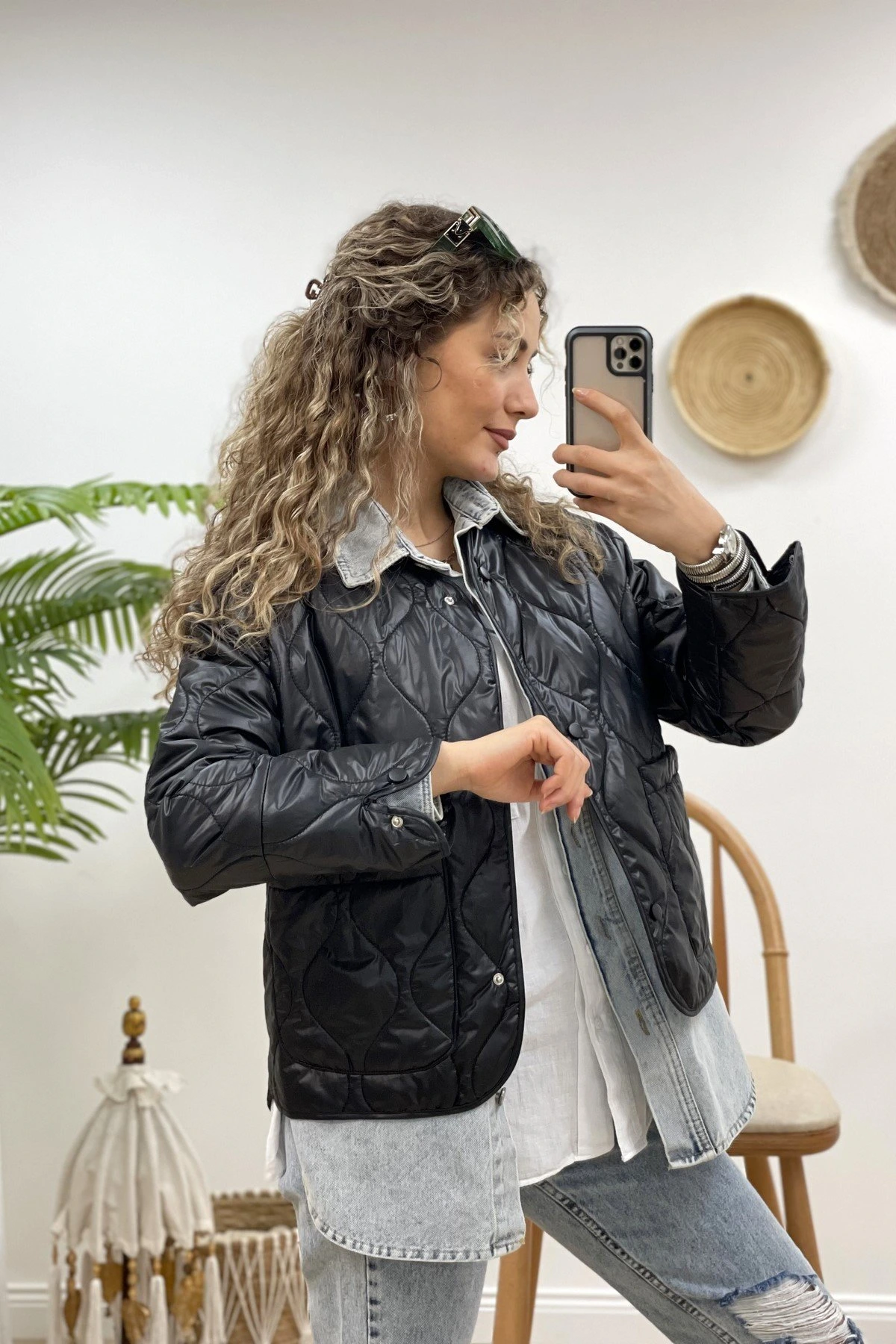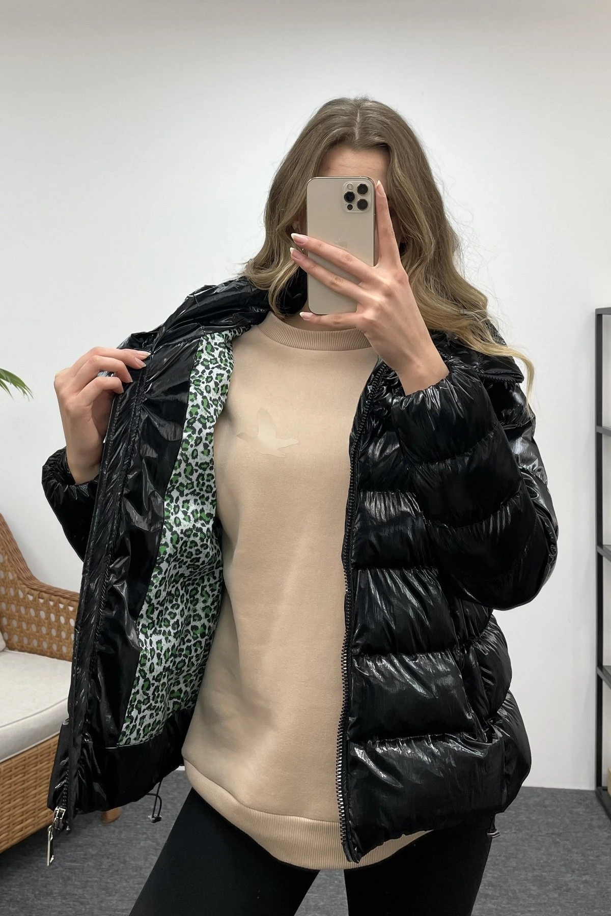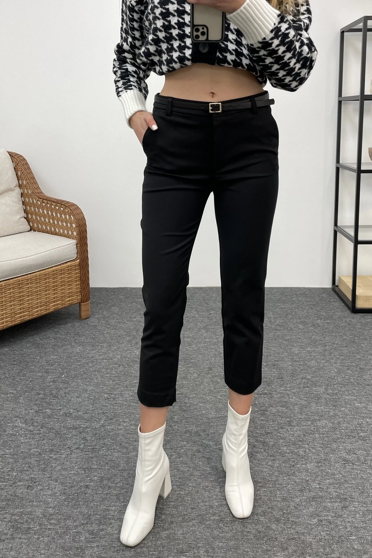 FERMUARLI DERİ CROP – SİYAH