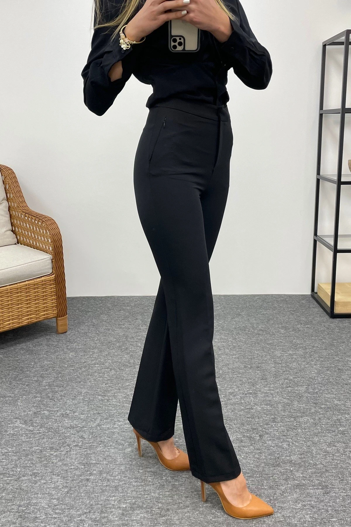 DİZ DİKİŞİ DETAY DERİ PANTOLON – SÜTLÜ KAHVE