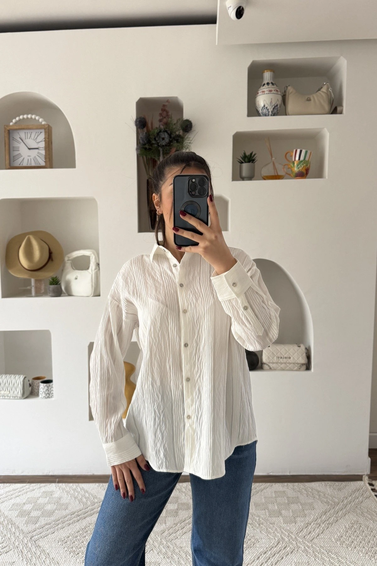 KÖRÜKLÜ KAPAK CEP ÇITÇITLI EKOSE PAMUK GÖMLEK – KREM SİYAH
