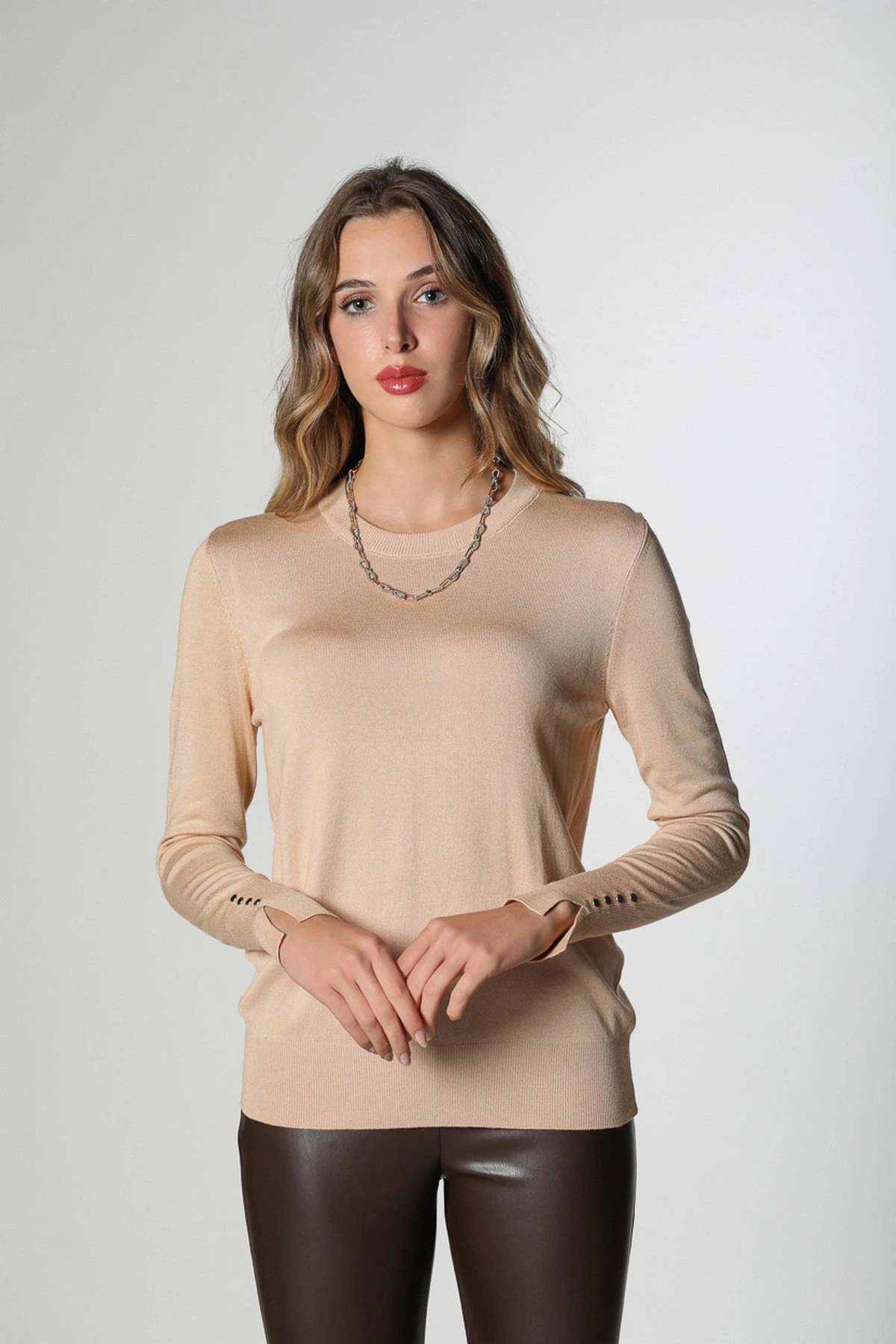 BİSİKLET YAKA BEL PENCERE CROP ATLET – BEJ