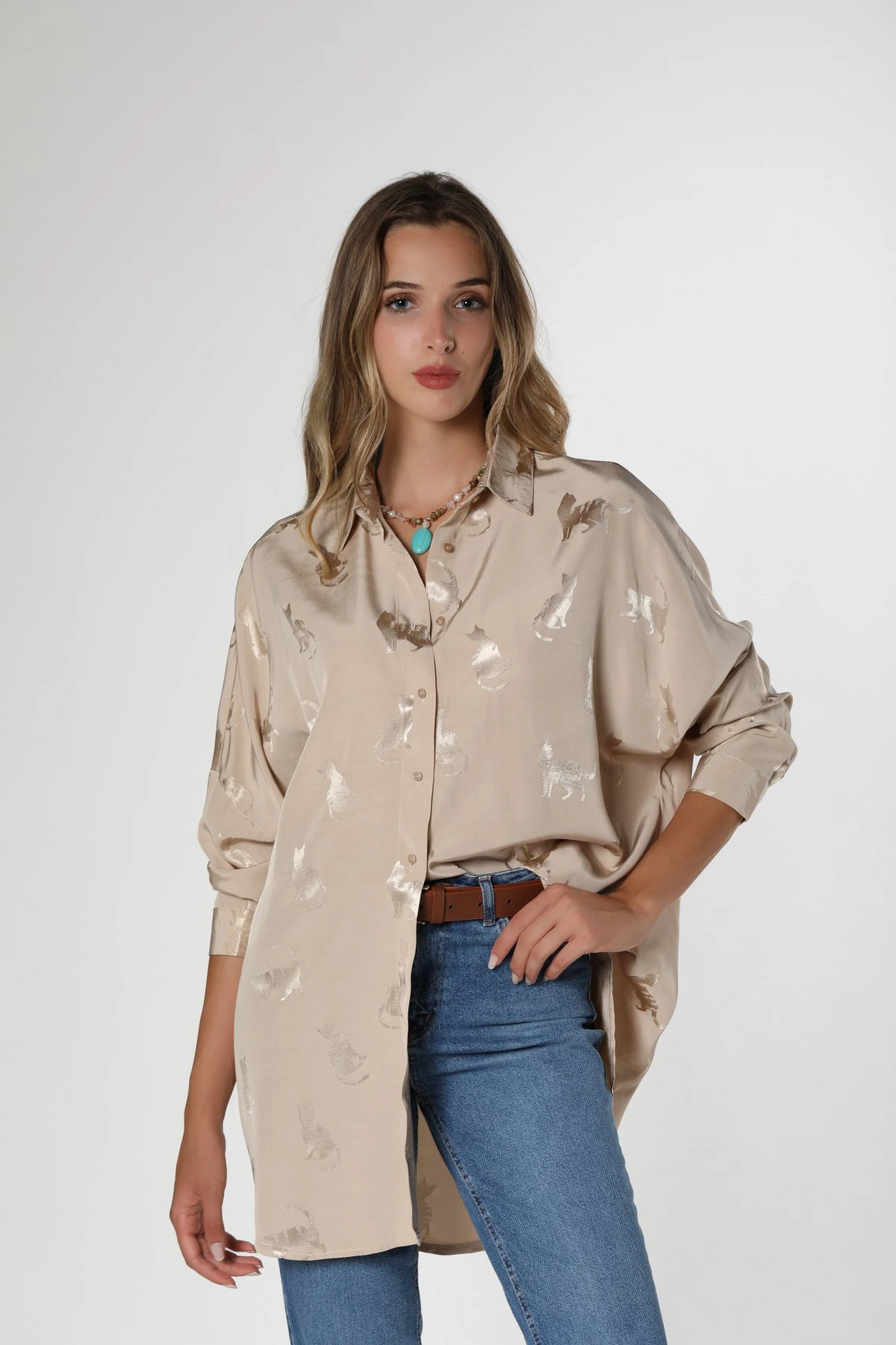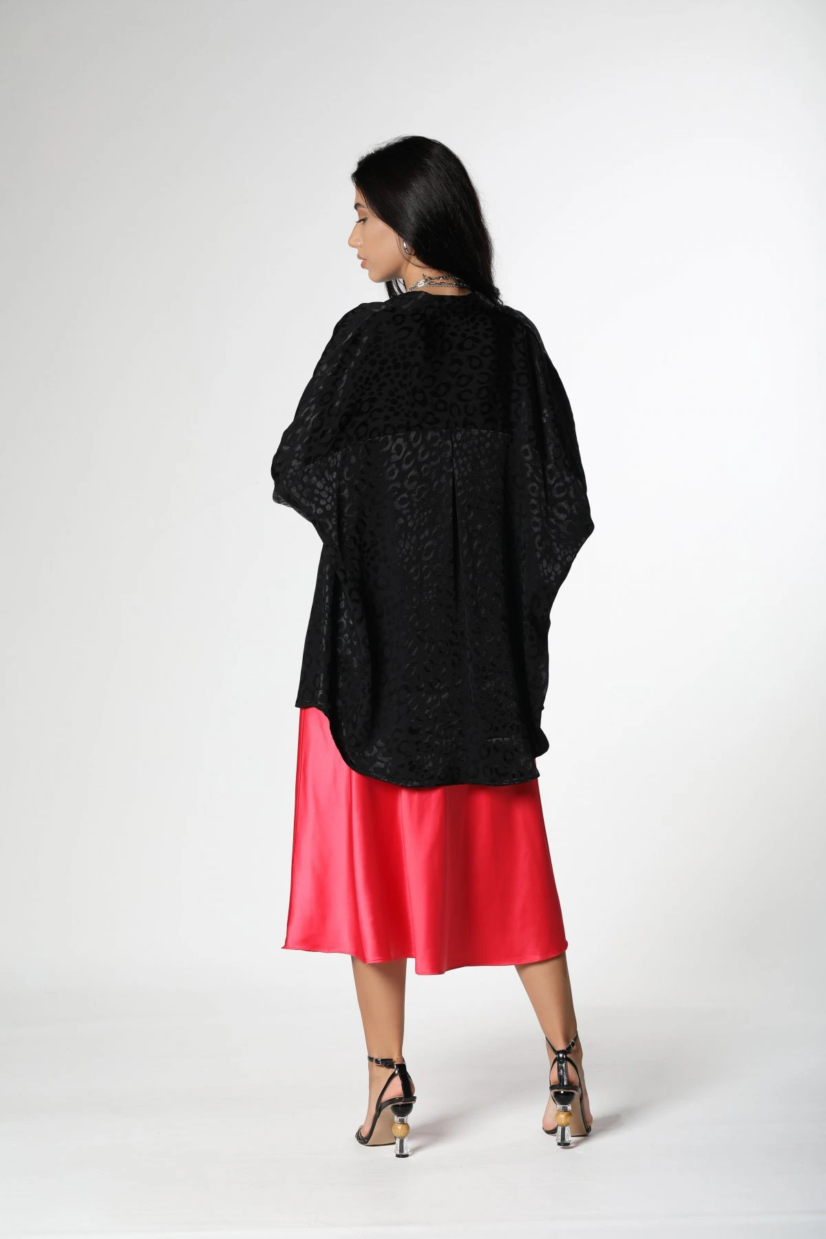 HALLHUBER DÜĞMELİ V YAKA İPEK BLUZ – SİYAH