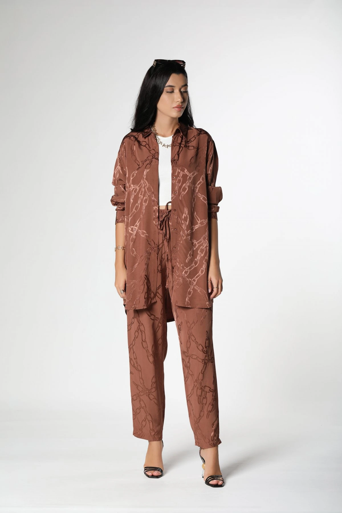 İTHAL YILAN DESEN RAHAT PANTOLON – KİREMİT
