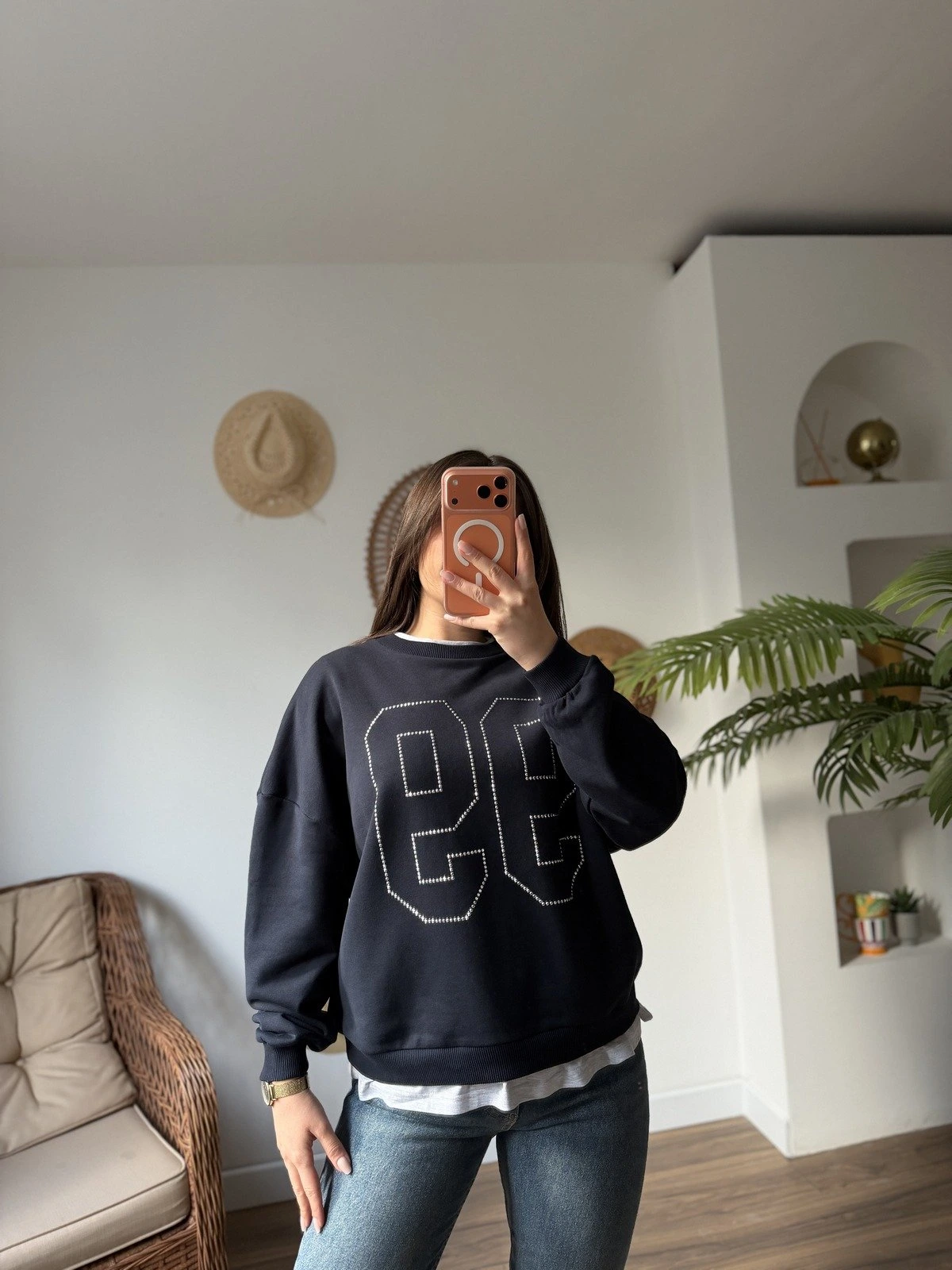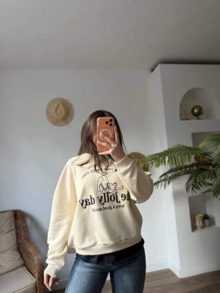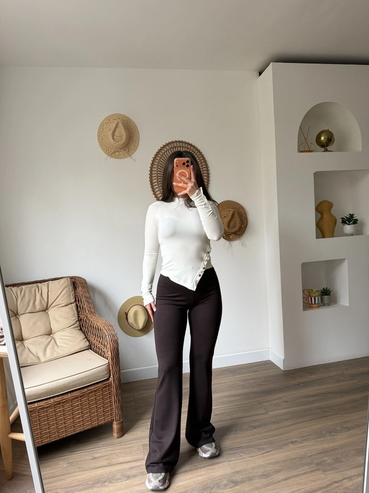 BİSİKLET YAKA GOLD ÇITÇITLI UZUN KOL PAMUK BLUZ – EKRU