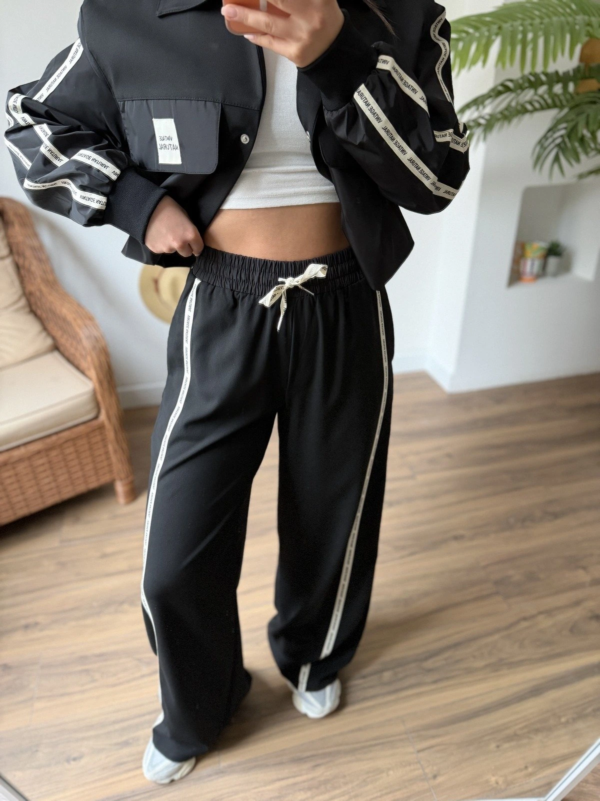 BEL LASTİK CEPLİ ŞERİT DETAY PARLAK PAMUK BOL PAÇA PANTOLON – HAKİ