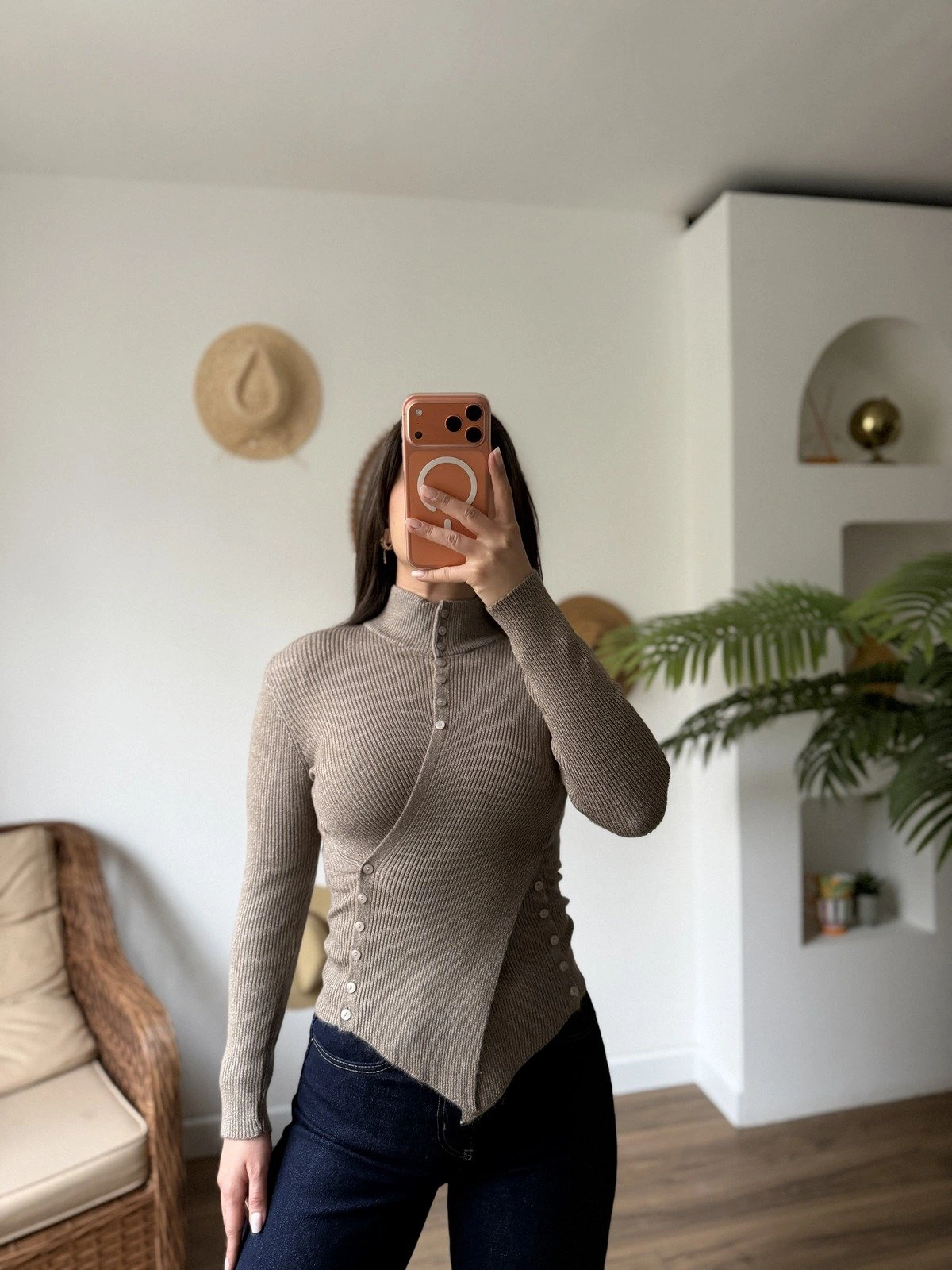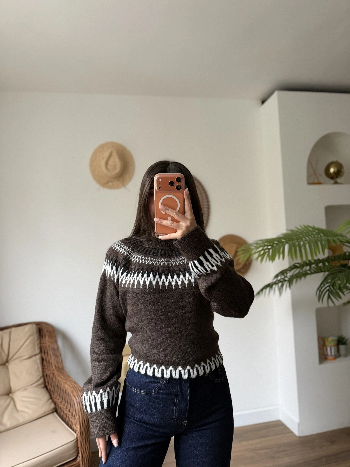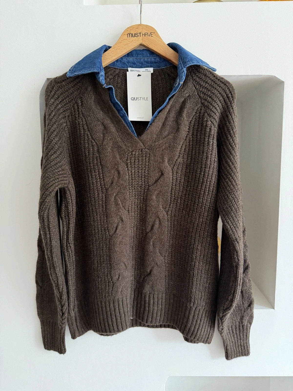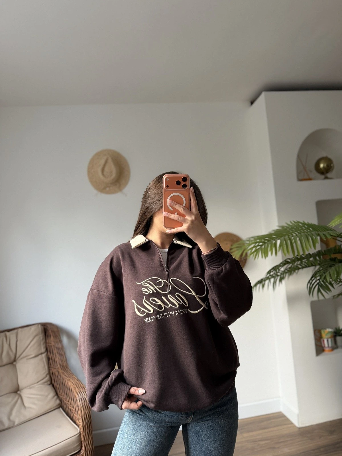 BİSİKLET YAKA KOL DROP SİMLİ VİSKON KAZAK – KAHVE