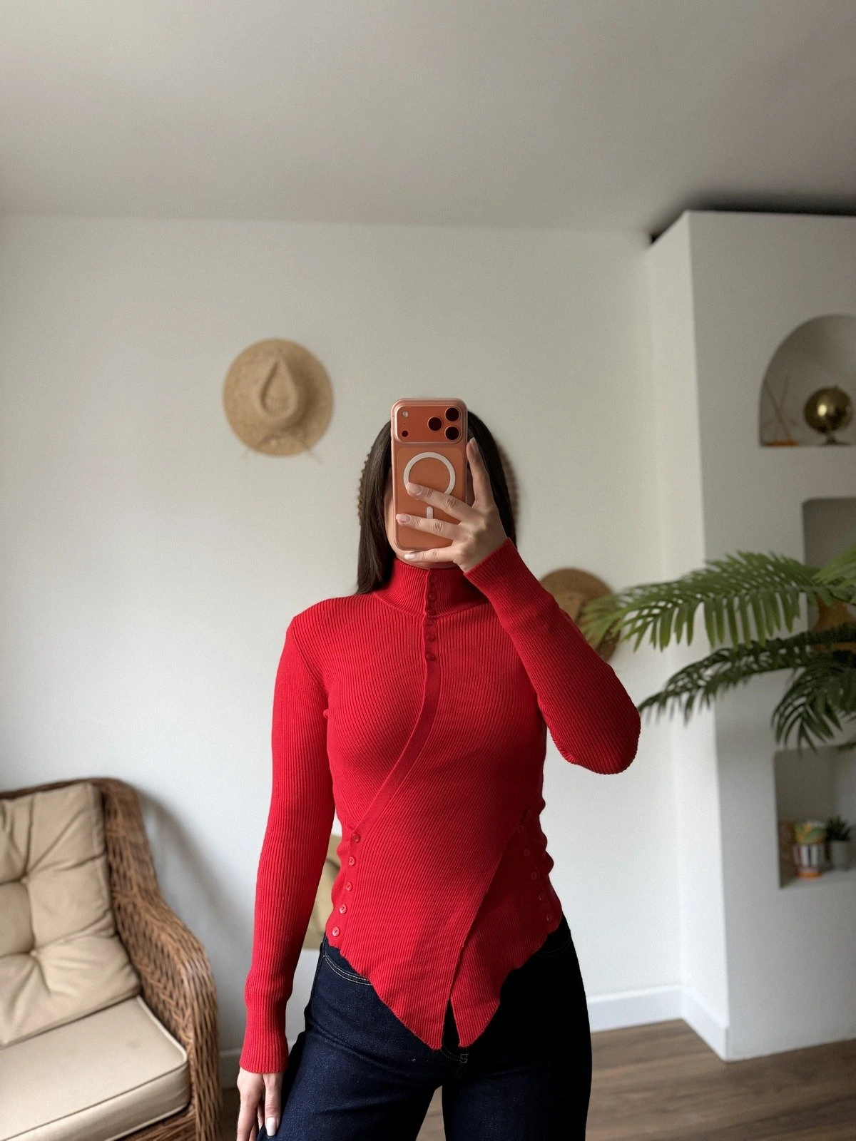 V YAKA KOL DROP SİMLİ VİSKON KAZAK – KAHVE