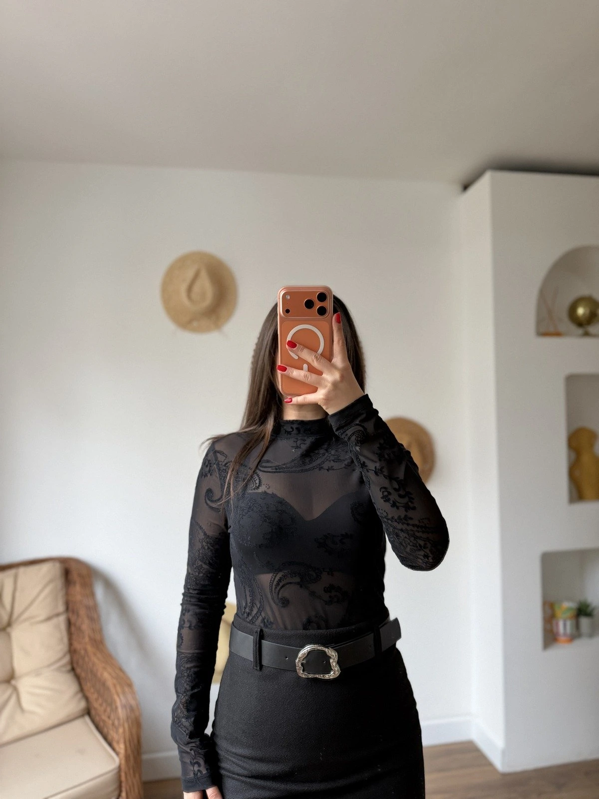 ETEK UCU DANTEL BİSİKLET YAKA TRİKO ELBİSE – SİYAH