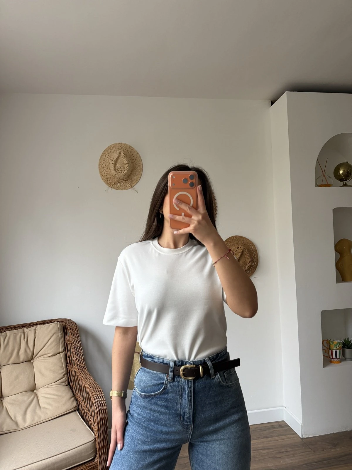KOL VOLANLI GÖĞSÜ ÇİFT KAT MODAL PAMUK BLUZ – BEYAZ