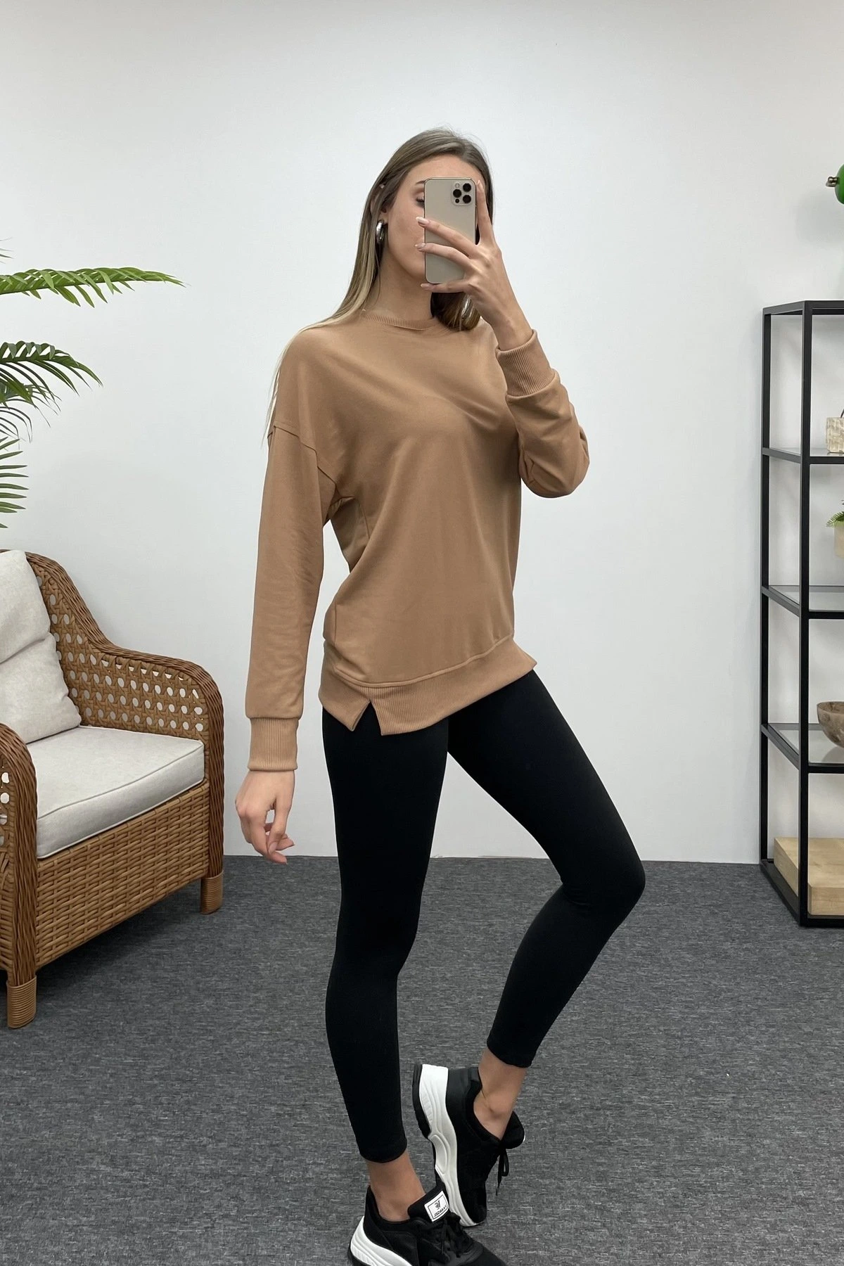 BİSİKLET YAKA SWEAT – KARAMEL