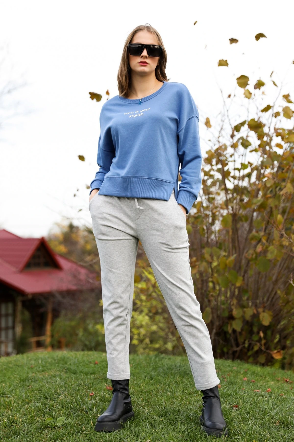 STYLİSH ARKA UZUN SWEAT – MAVİ