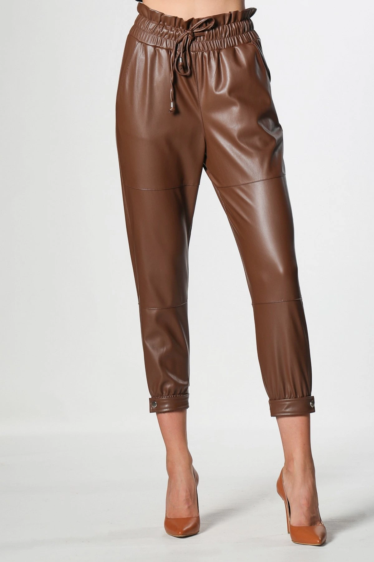PAÇA ÇITÇITLI DERİ PANTOLON – KAHVE