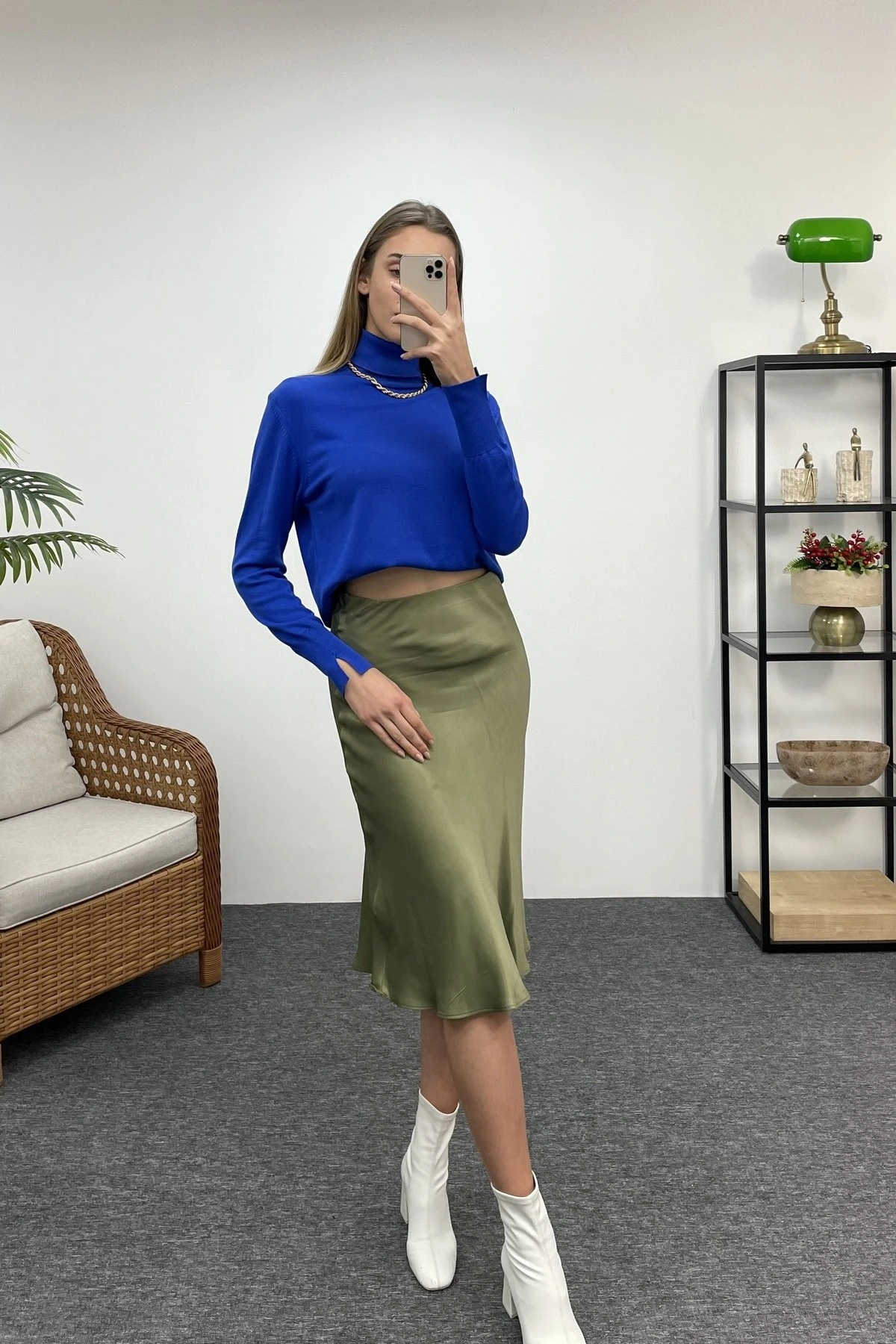 BİSİKLET YAKA ETEĞİ FERMUARLI TRİKO – İNDİGO